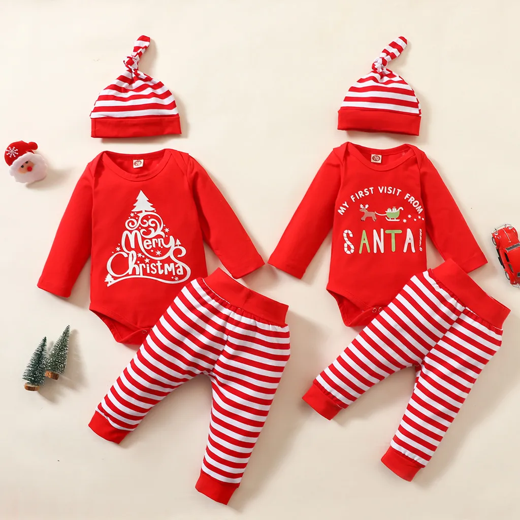 Мой первый Рождественский комплект детской одежды для 0-18 месяцев 4 шт. новогодний Рождественский костюм для малышей наряды для маленьких девочек и мальчиков