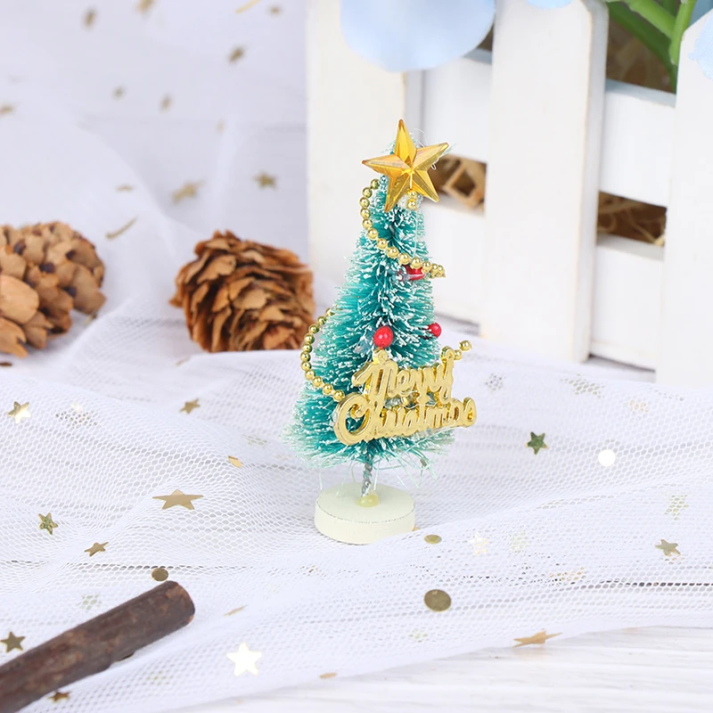 1: 12 миниатюрная Рождественская елка для кукольного домика с надписью Merry Christmas, деревянная подставка, украшение