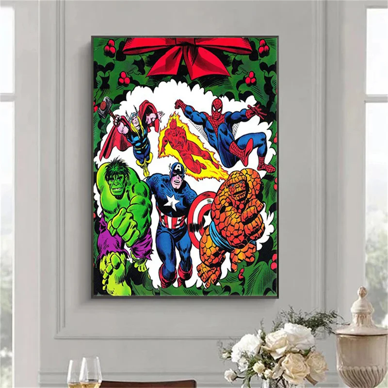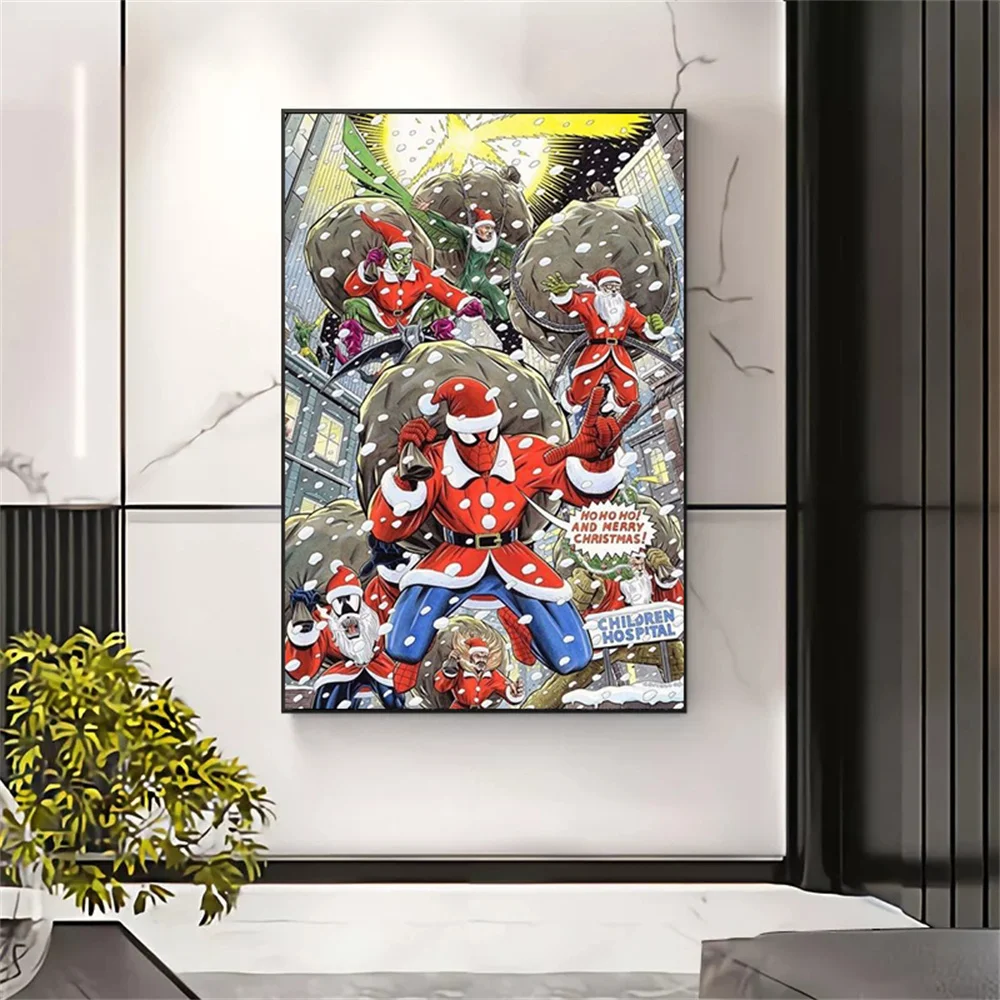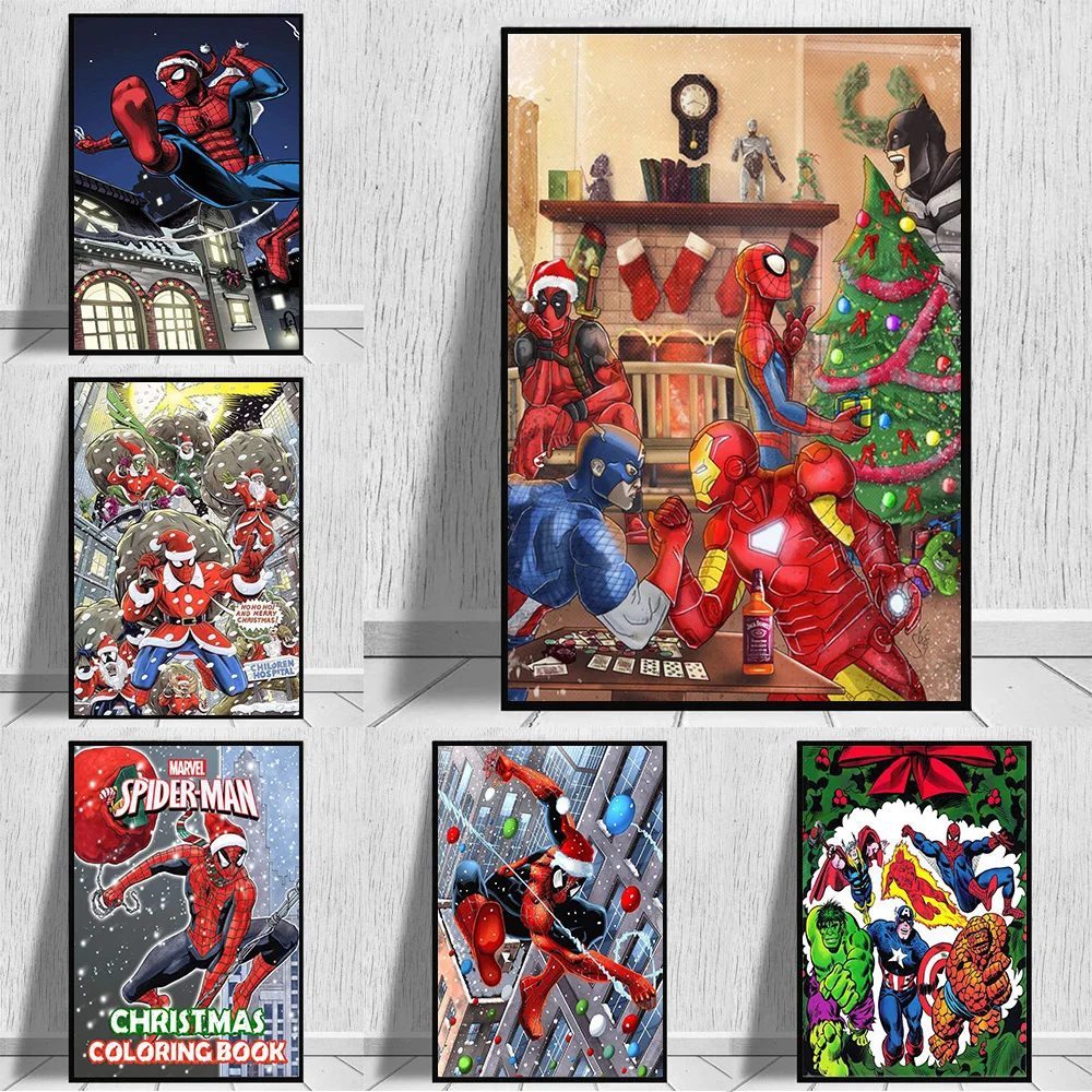 Рождественский стиль Марвел плакат супергероя, живопись, произведение искусства на холсте, принты Железный человек, Человек-паук, настенные картины для домашнего декора
