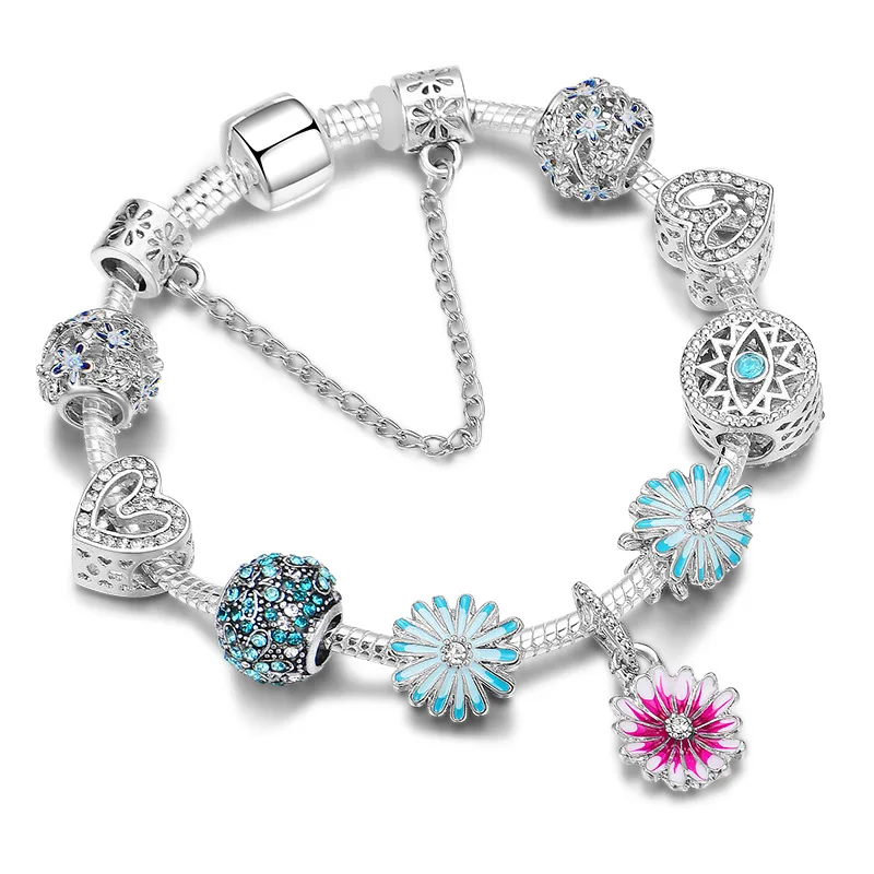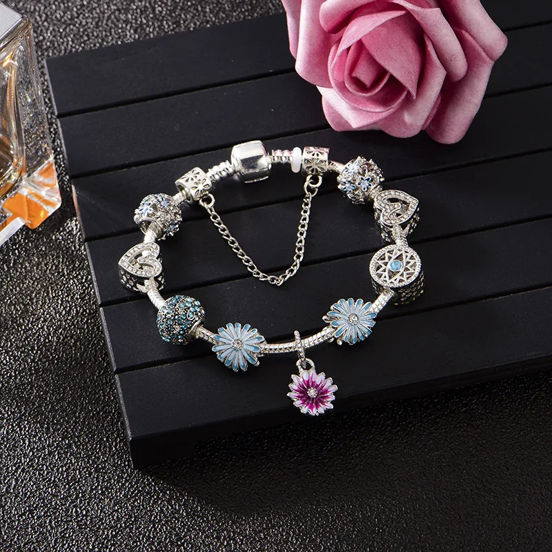 Новинка 2020, стильный простой телефон, яркий синий цветок маргаритки, креативный подходит для браслетов Pandora, оптовая продажа