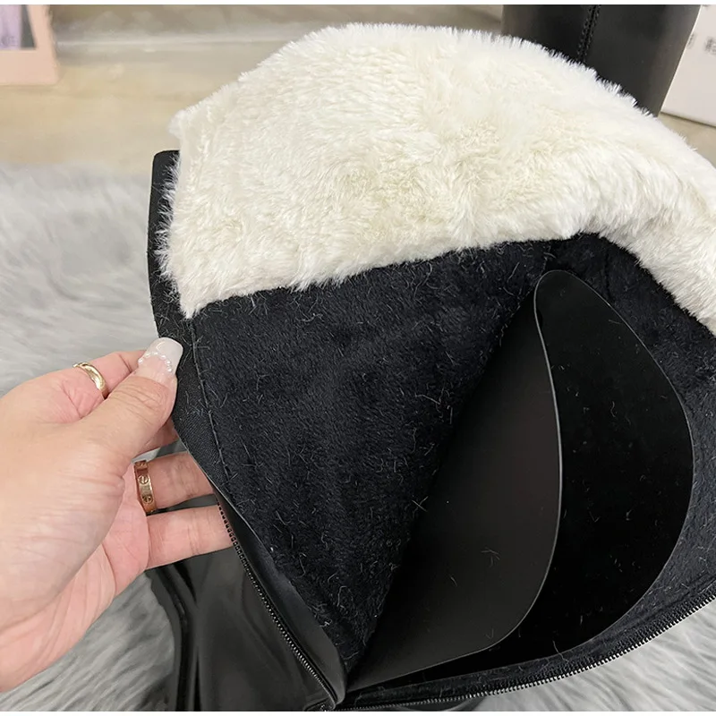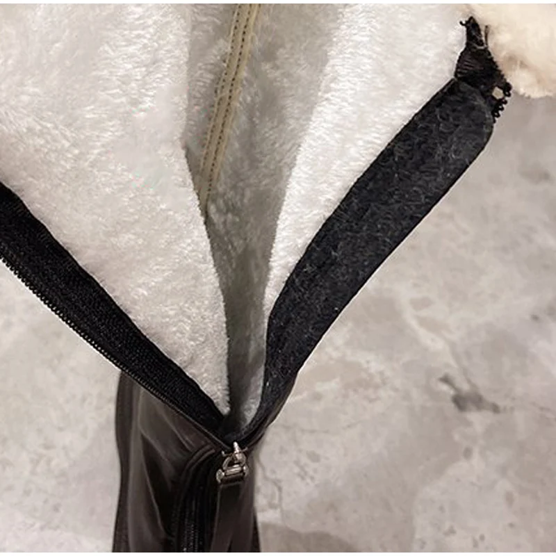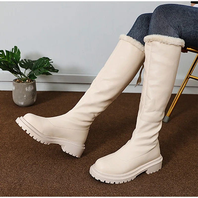 Женские высокие сапоги до бедра, зимние теплые мотоциклетные сапоги на платформе, с плюшевой подкладкой