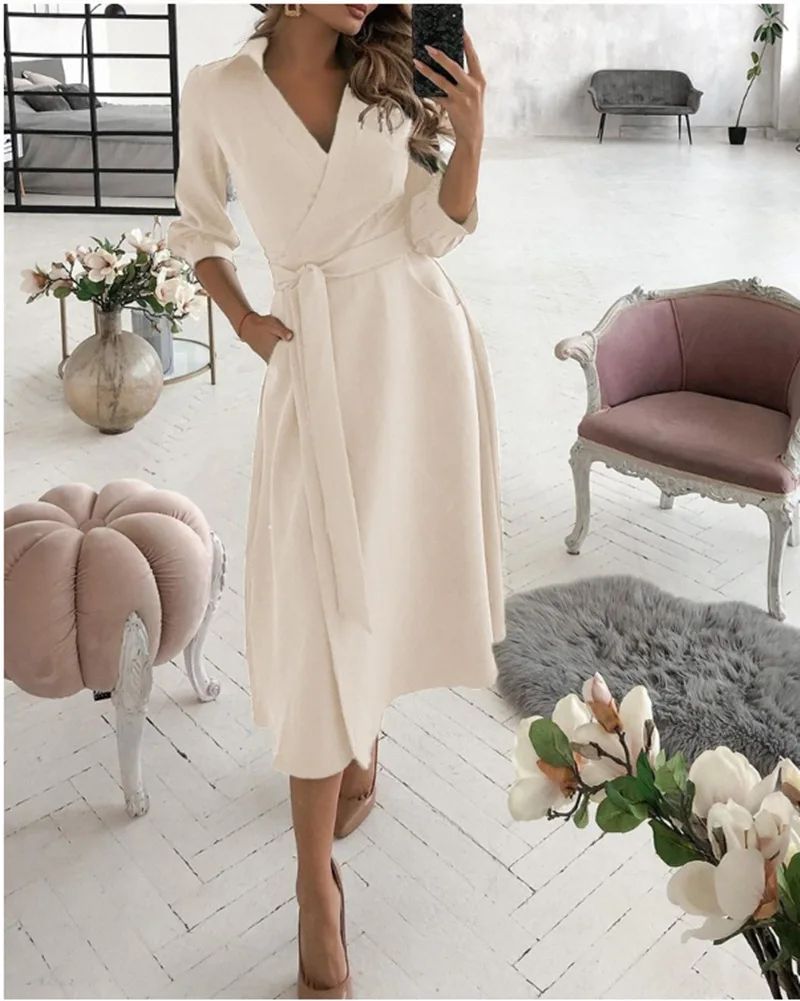 Женское офисное платье с запахом, повседневное ТРАПЕЦИЕВИДНОЕ плать...