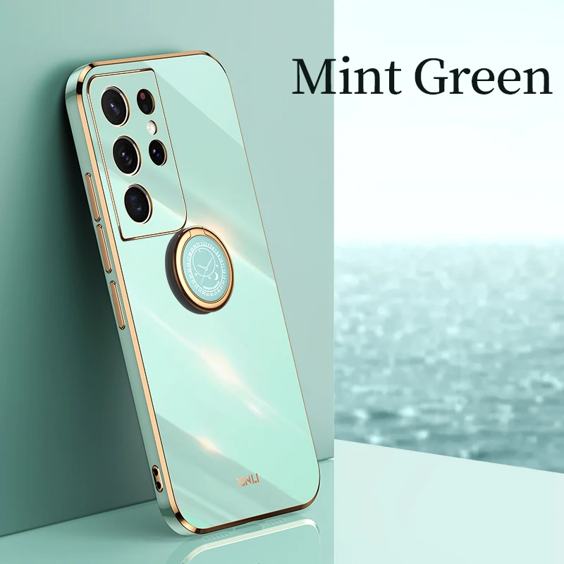 Роскошный квадратный чехол с кольцом-держателем с покрытием для телефона Samsung Galaxy S21 S22 Ultra Plus S 21 FE 5g A32 A52 2021, силиконовый чехол-подставка