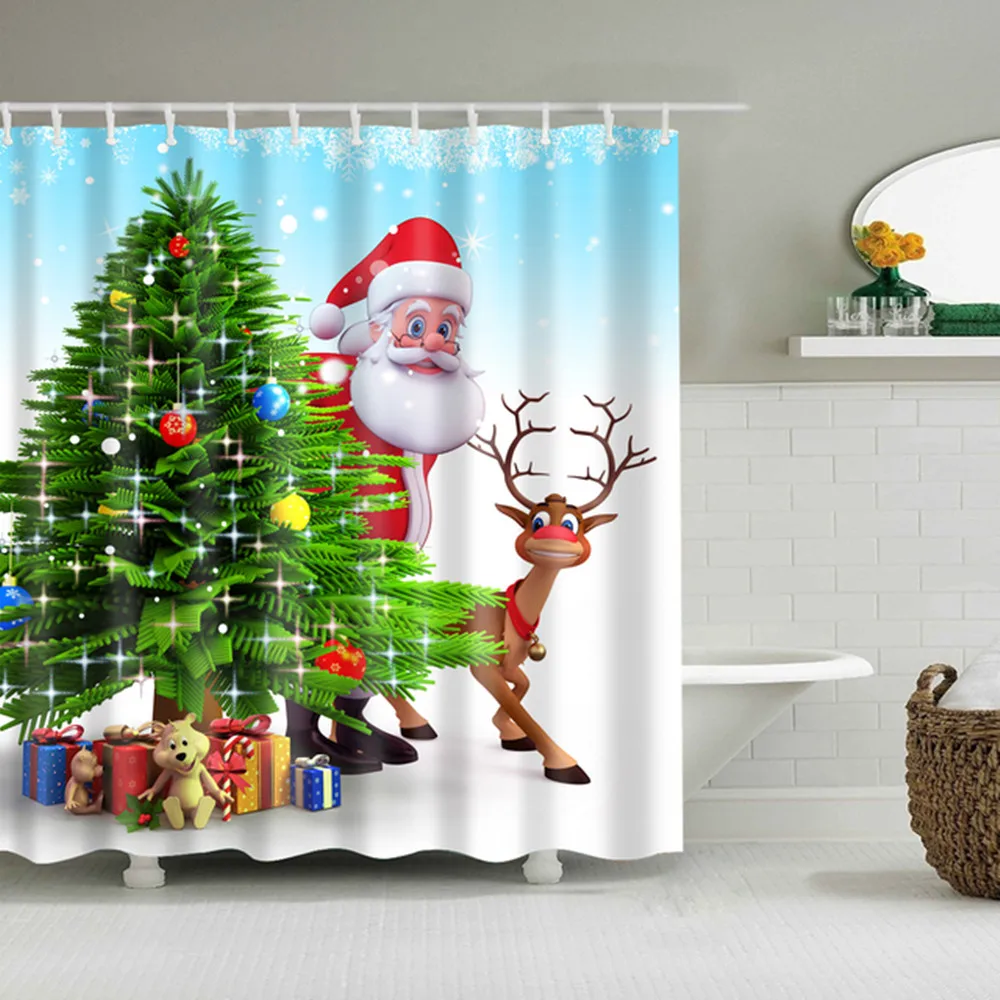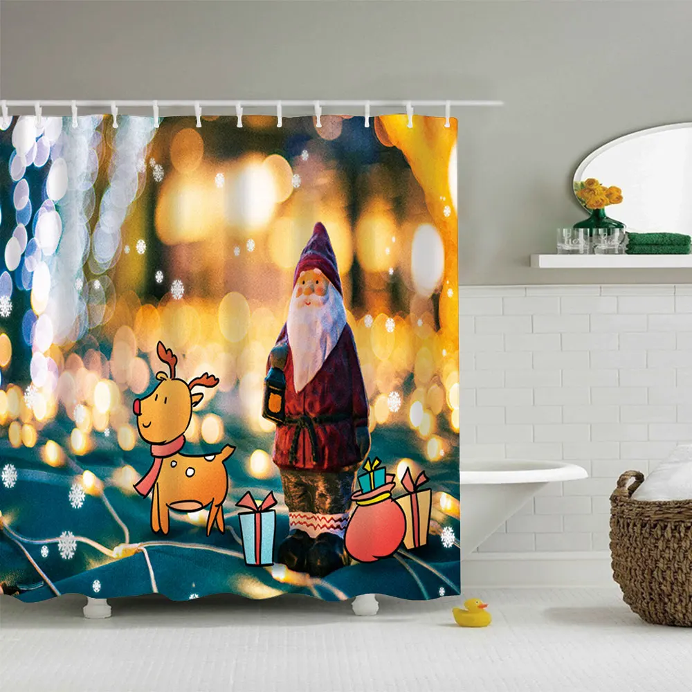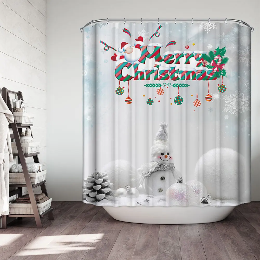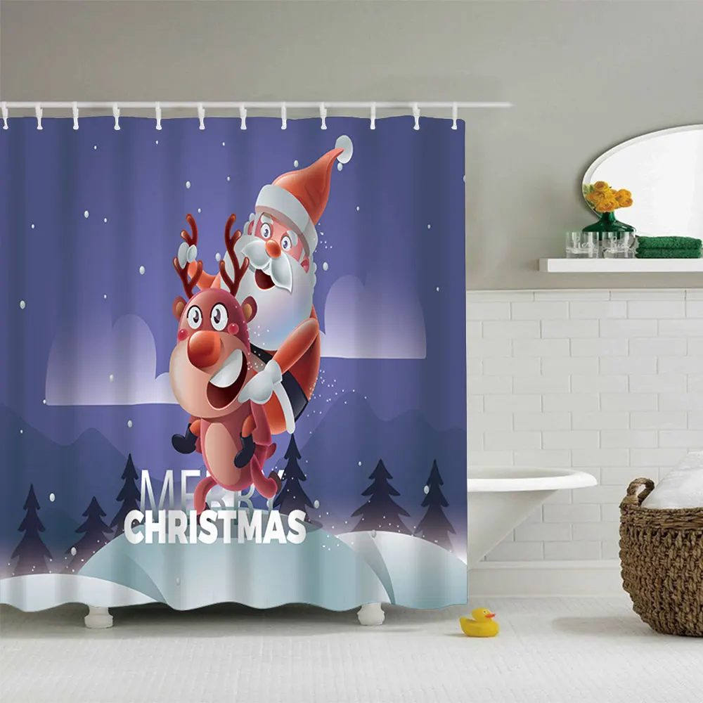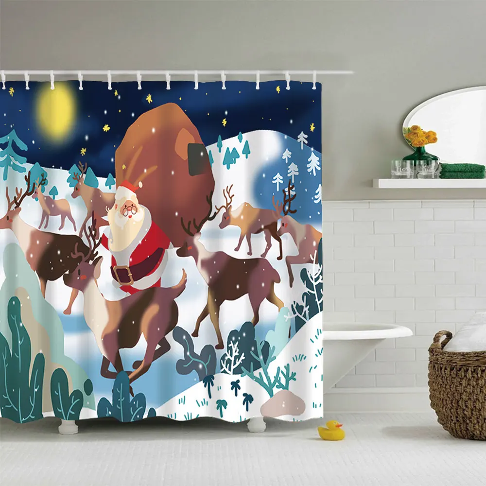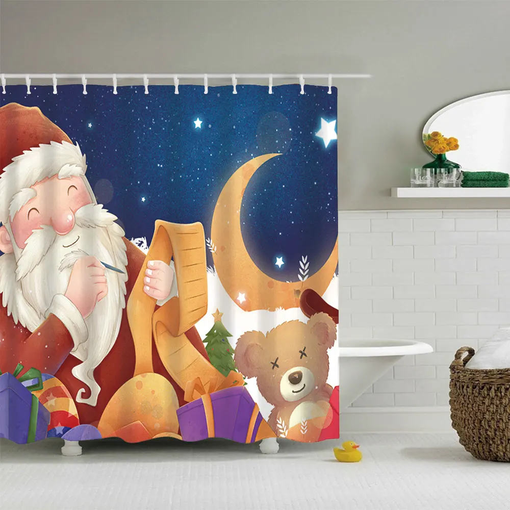 Водонепроницаемая занавеска для ванной, тканевая шторка для душа в ванную комнату, подарок на Рождество, Санта Клаус, снеговик, олень