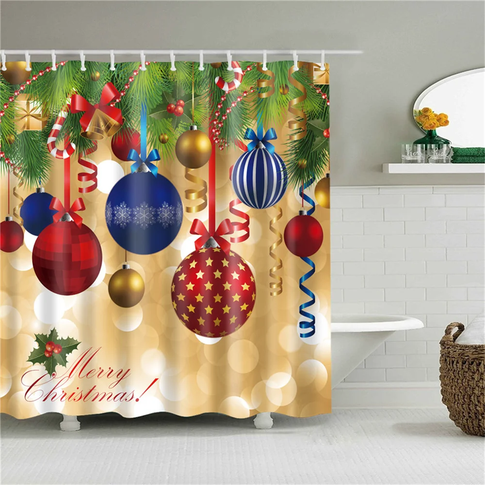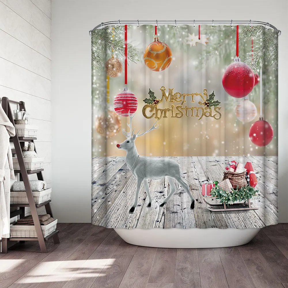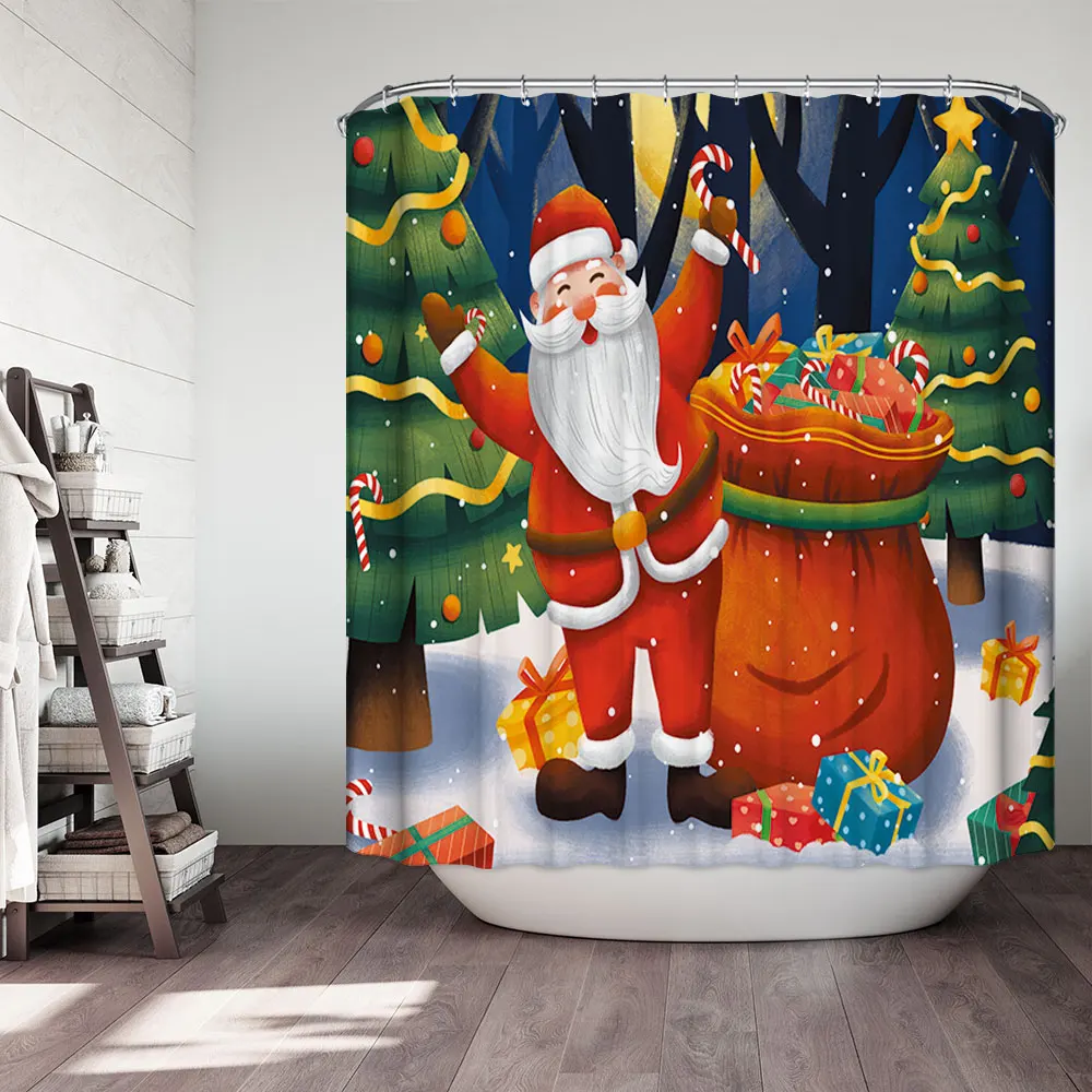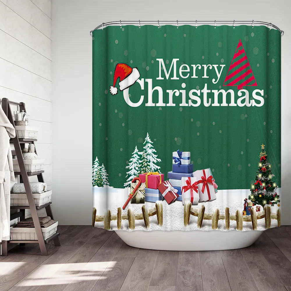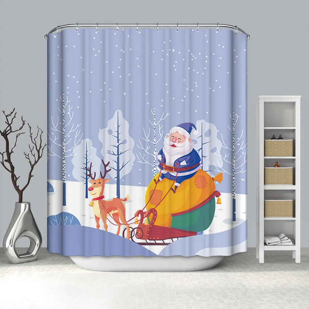 Водонепроницаемая занавеска для ванной, тканевая шторка для душа в ванную комнату, подарок на Рождество, Санта Клаус, снеговик, олень
