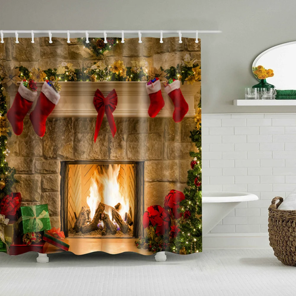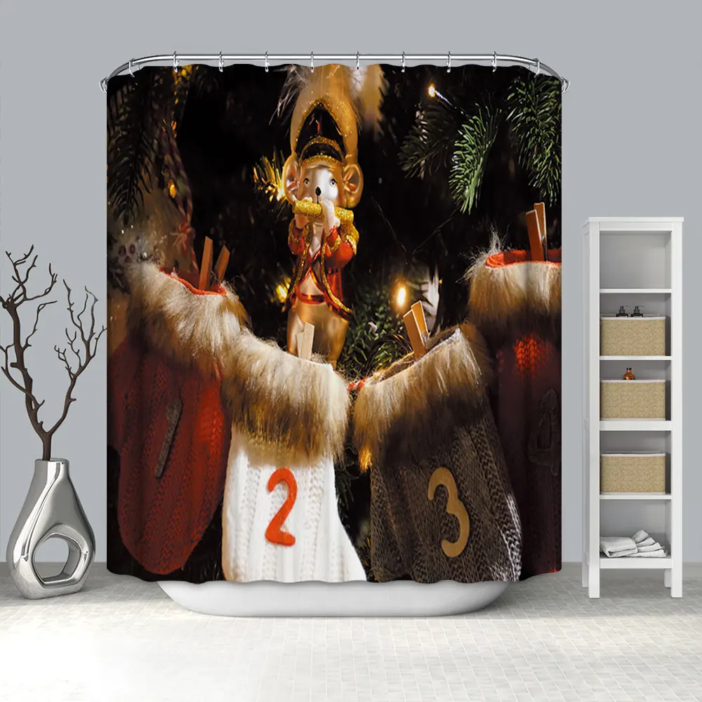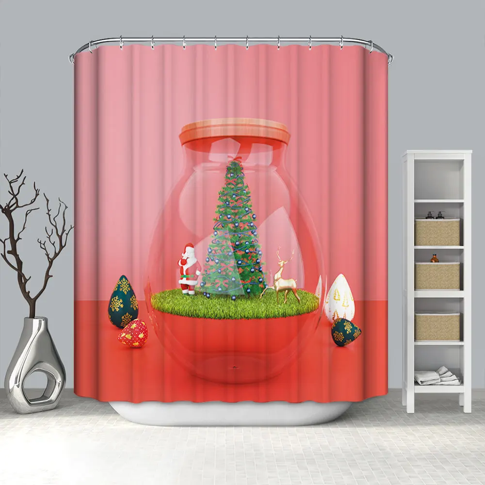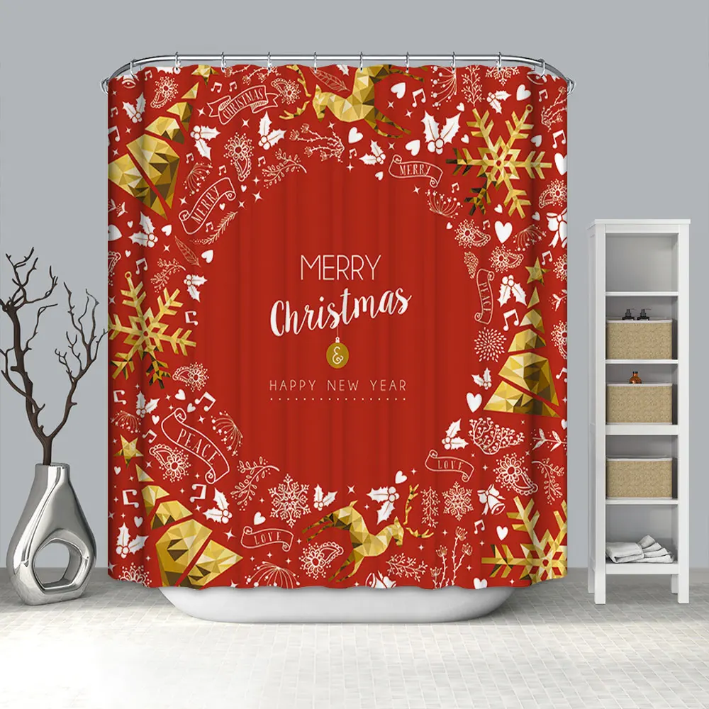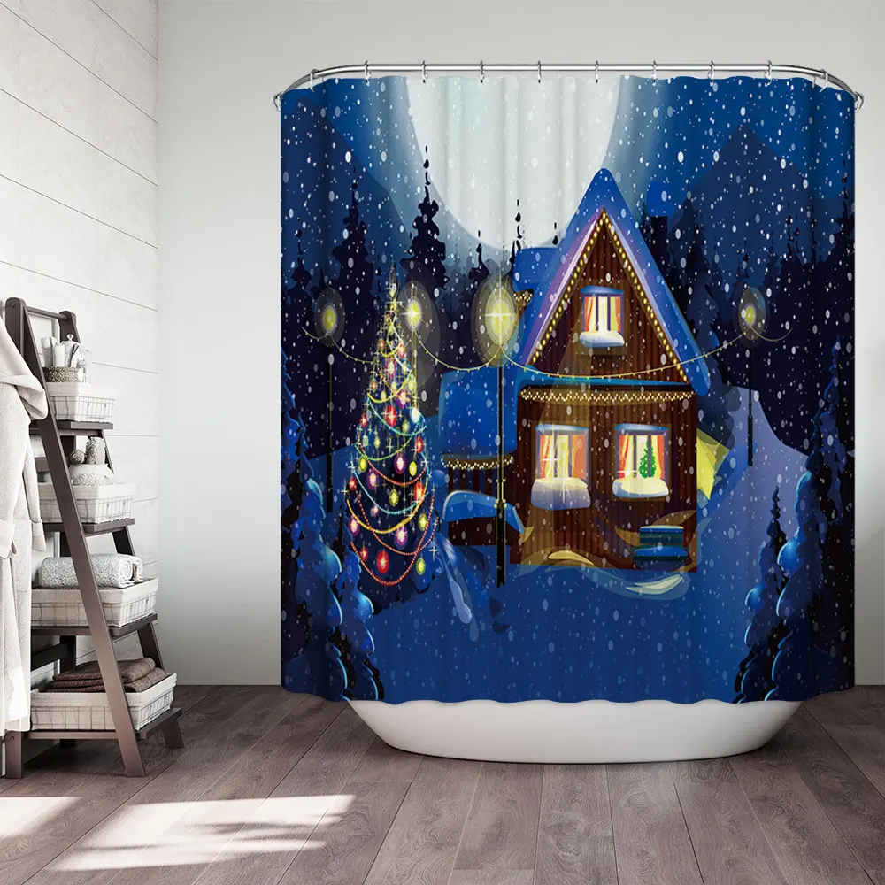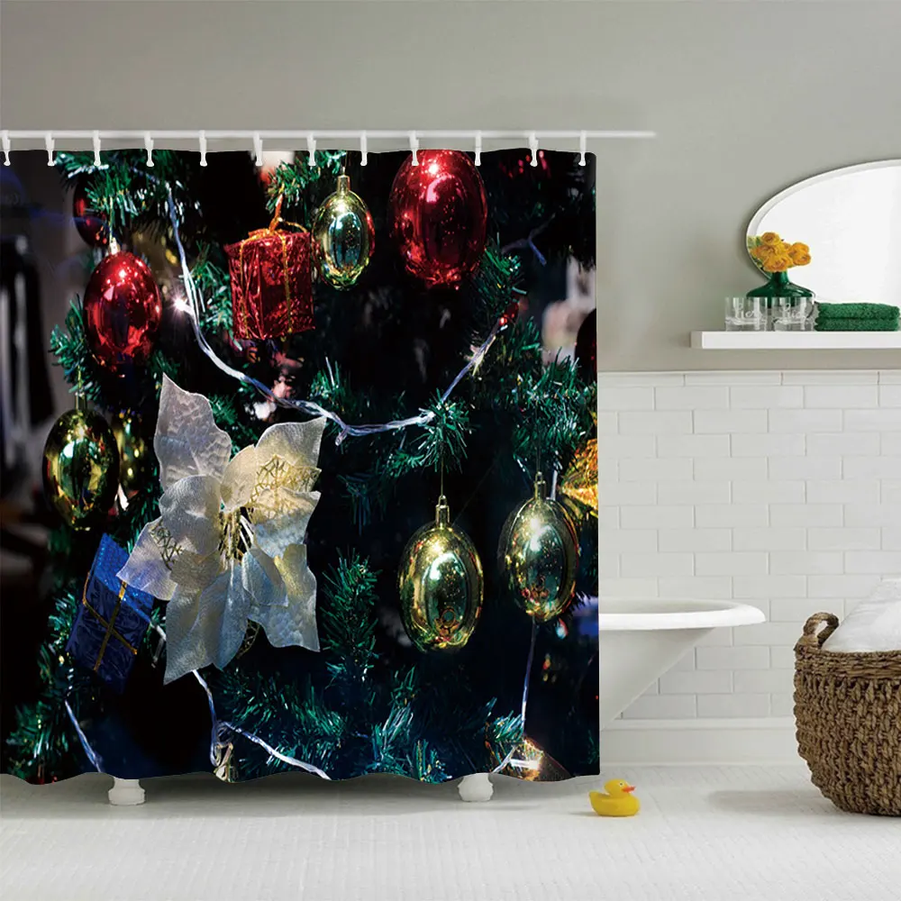 Водонепроницаемая занавеска для ванной, тканевая шторка для душа в ванную комнату, подарок на Рождество, Санта Клаус, снеговик, олень