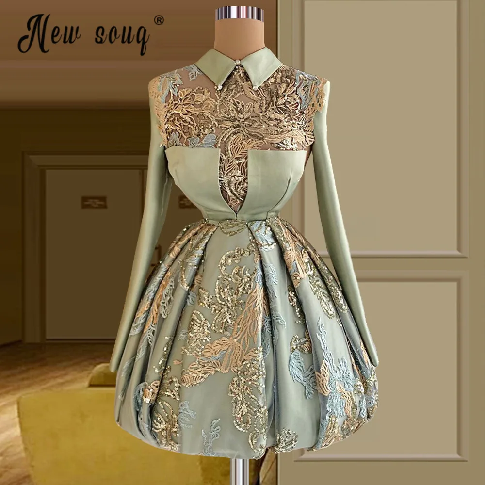 Винтажное Короткое бальное платье с аппликацией и длинными рукавами, женское блестящее платье для выпускного вечера, Прямая поставка, кружевное коктейльное платье