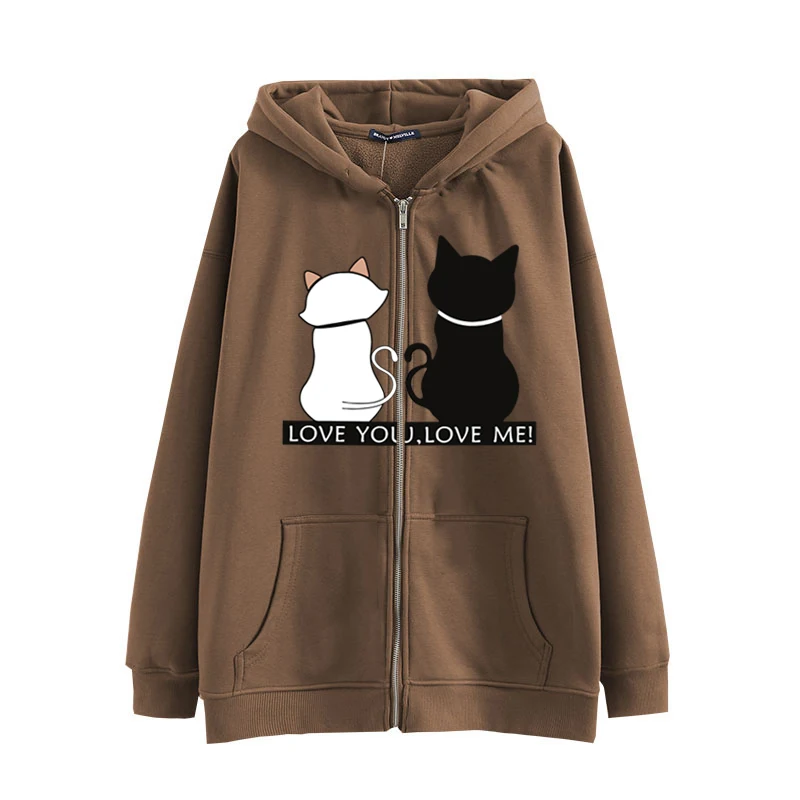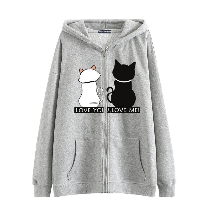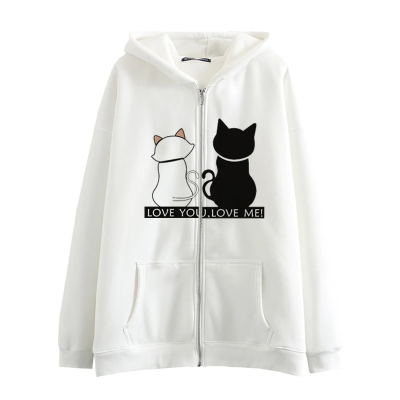Толстовка женская оверсайз на молнии, аниме, милый кот, в стиле хип-хоп, японская, в стиле Харадзюку, одежда для девушек, Осень-зима
