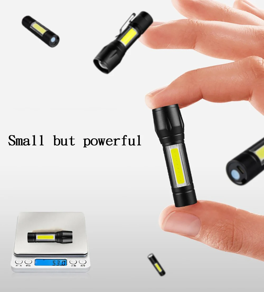 Светодиодный мини-фонарик XP-G Q5 COB со встроенным аккумулятором, фонарик с фокусом и зумом, 2000 люмен, регулируемый водонепроницаемый фонарь для кемпинга