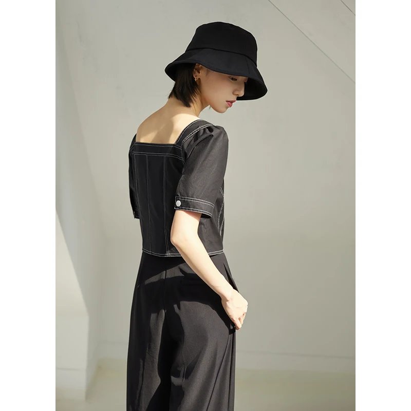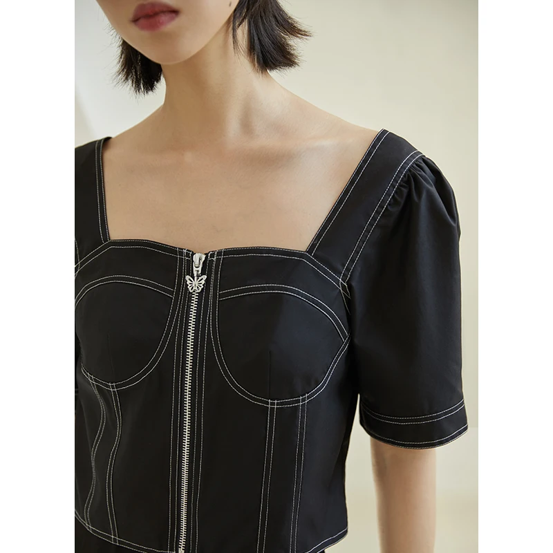 ZIQIAO, японская женская короткая рубашка с квадратным вырезом, открытые топы на молнии