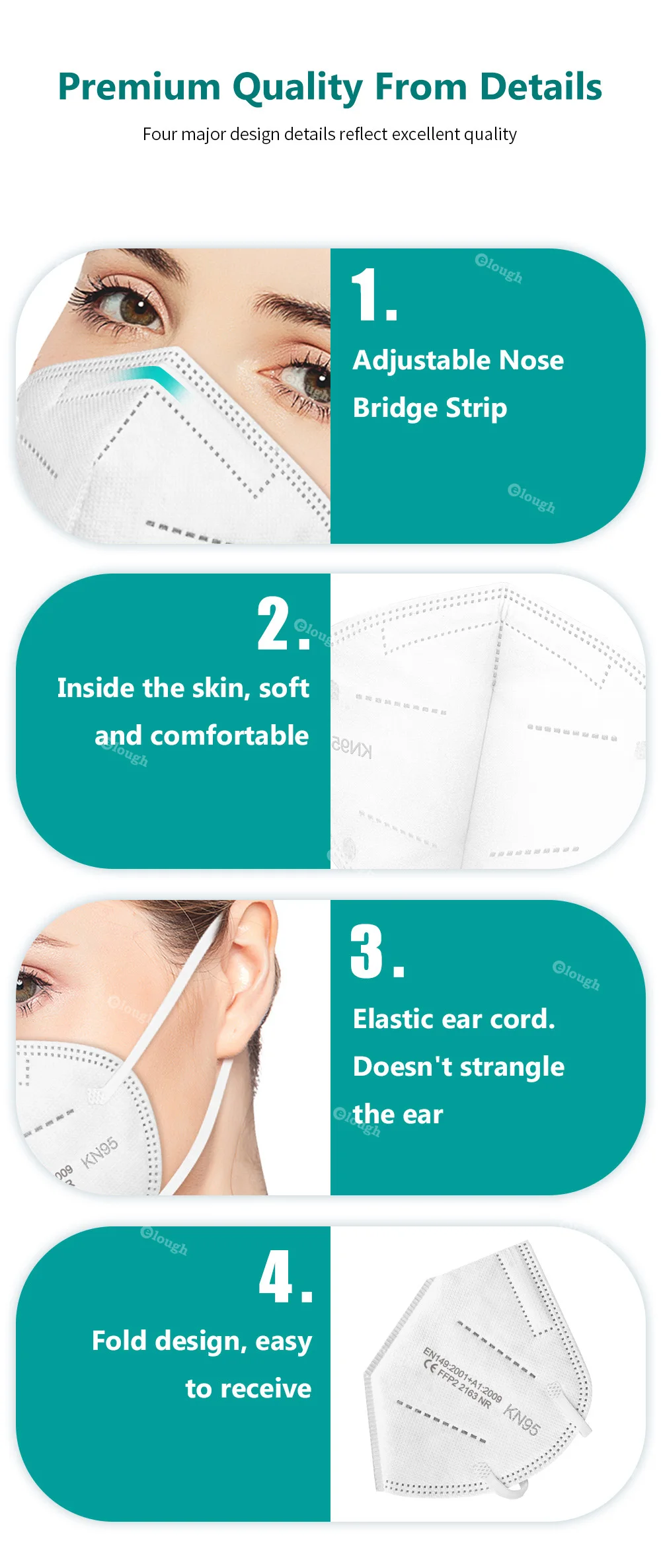 1. Черный, серый и синий цвет KN95 маски не напечатаны "EN149:2001 + A12009 CE FFP2 2163 NR", только белый/розовый/хаки/зеленый/красный/желтый цвет напечатано это