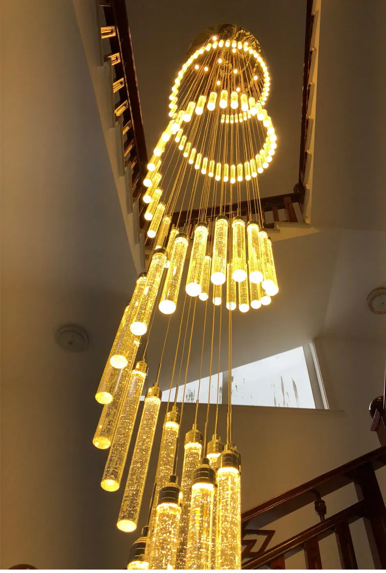 Новая светодиодный Люстра Золотой дуплекс чердак гостиная лестница длинная Хрустальная Люстра лестница отеля Украшение подвеска