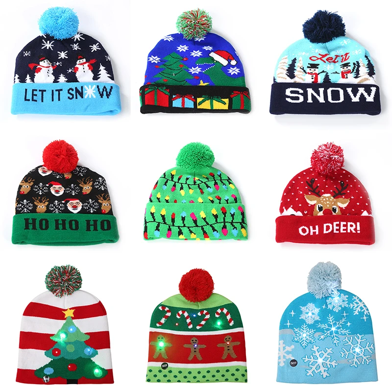 Рождественская шапка со светильник кой, Рождественский свитер светильник кой, вязаная шапочка, Рождественская шапка для взрослых и детей, новогодний Рождественский Декор 2022