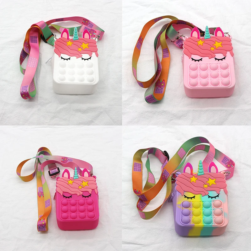 Детская Радужная сумка через плечо Pop It в виде единорога, игрушки-фиджеты, кавайный Кошелек для монет, снятие аутизма, силиконовые игрушки для детей, подарок