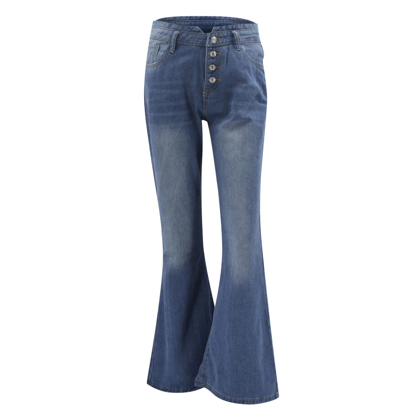 Женские винтажные джинсы-годе с высокой талией, модель 2021 года, женская уличная одежда, модные эластичные облегающие джинсовые расклешенные брюки, женские брюки # t3g