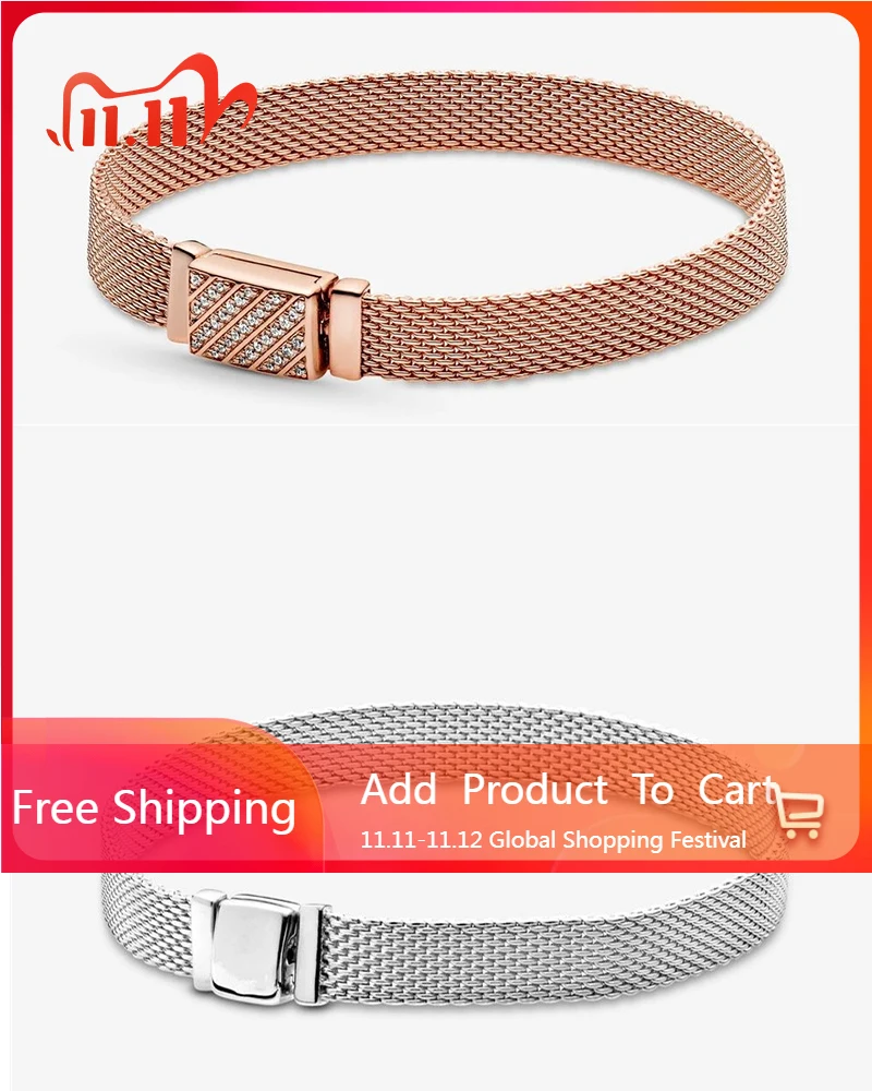 Браслет из серебра 925 пробы с розовым золотом и длинной застежкой, с фианитами, Подходит для Pandora DIY Bead Charm 2021, женские модные ювелирные украшения