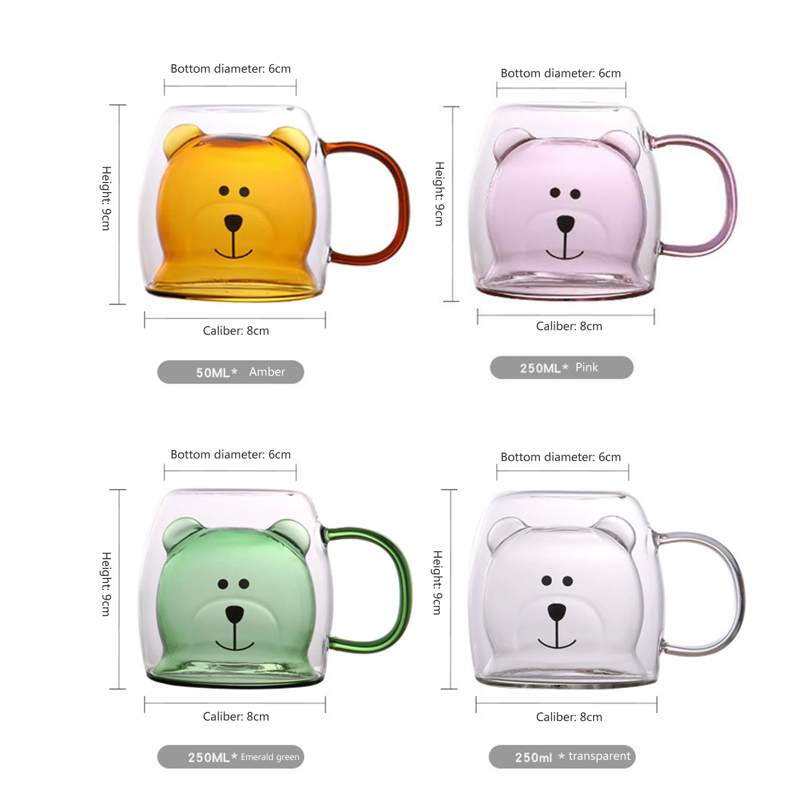 Симпатичные стеклянные кружки в форме медведя с двойными стенками, ...