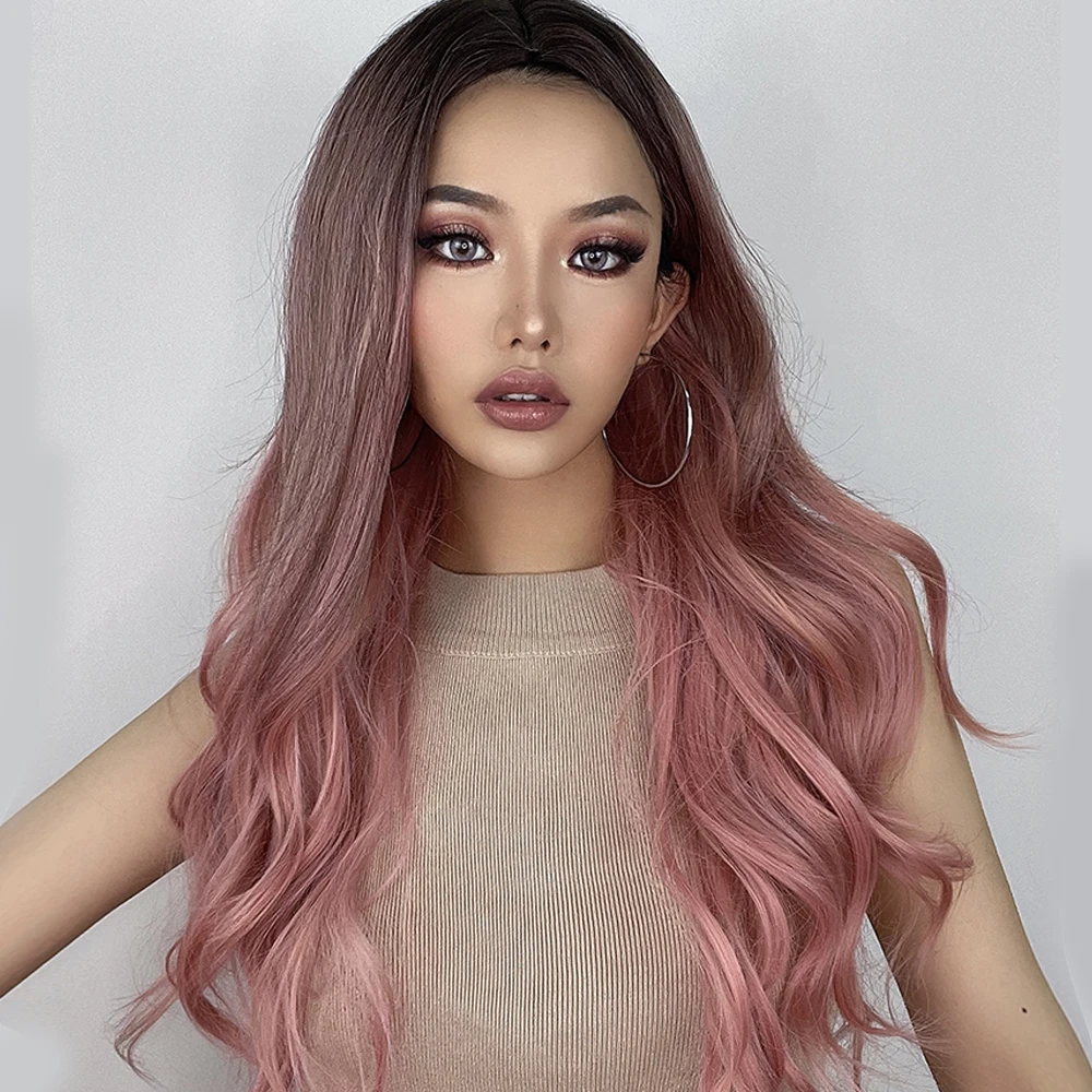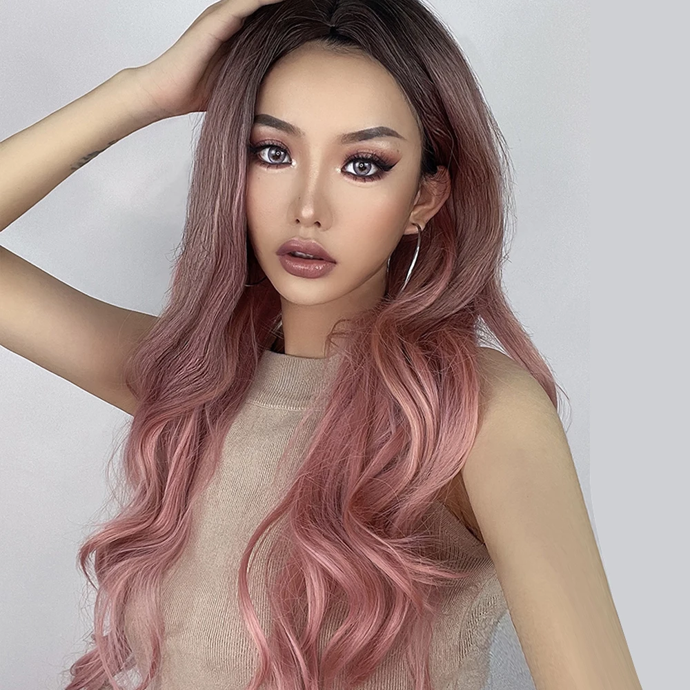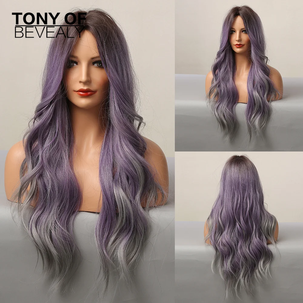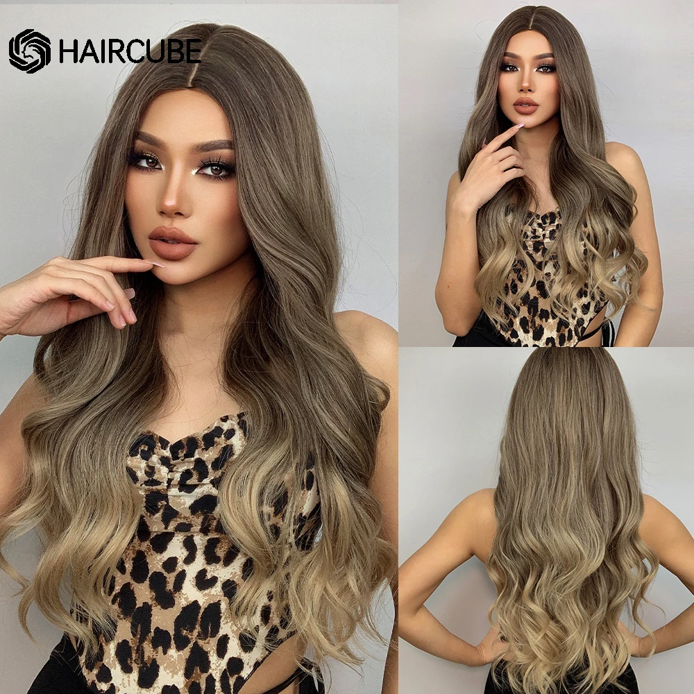Парики из синтетических волос с Омбре от коричневого до светлого цвета, длинные натуральные волнистые термостойкие парики, средней части для женщин, для косплея, повседневный модный парик
