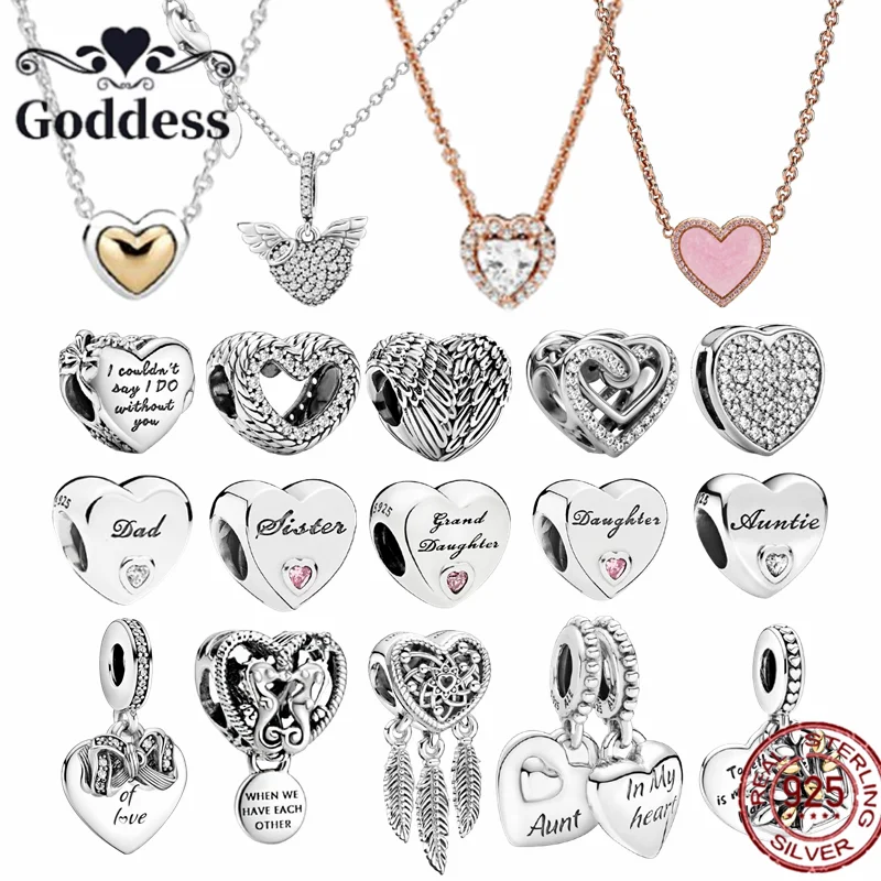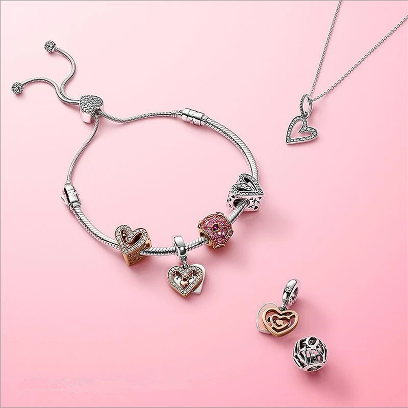 Бусины-шармы серебряные в форме сердца, для браслетов Pandora