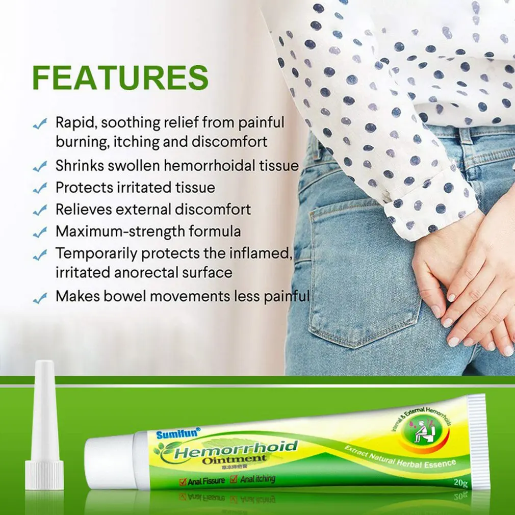 Мазь в основном используется у пациентов с геморроем, анальным разрывом и анальным пролапом. Он может эффективно удалять гнилые ткани, способствовать росту новых тканей, уменьшить опухшие ткани геморроя и ускорить заживление ануса.