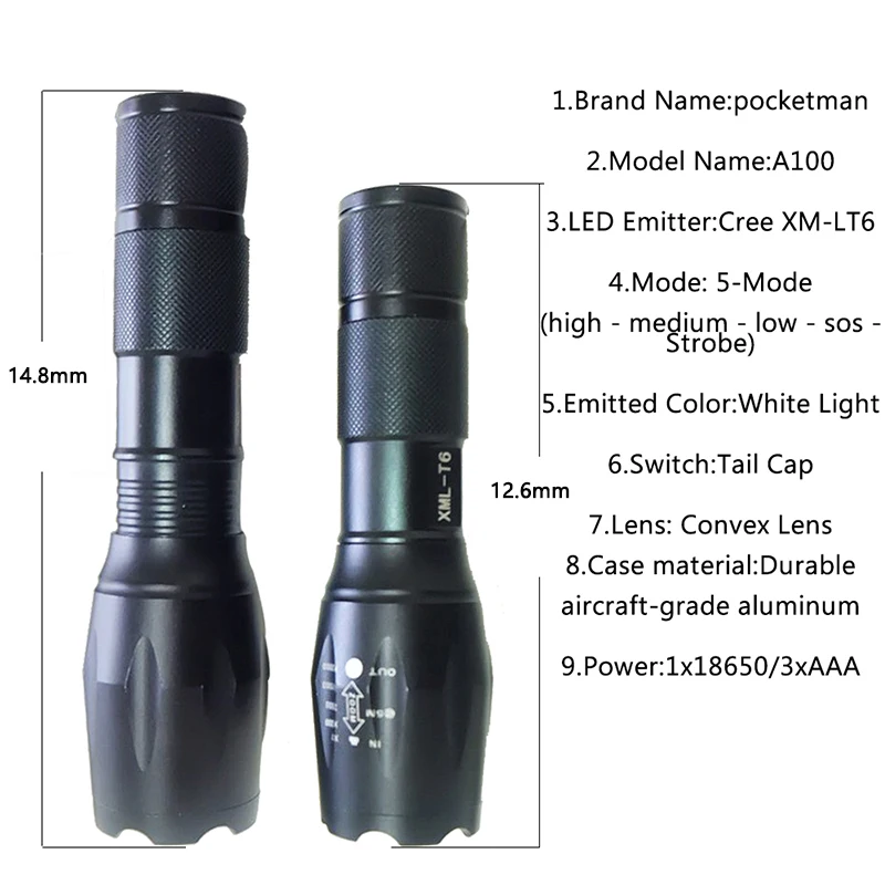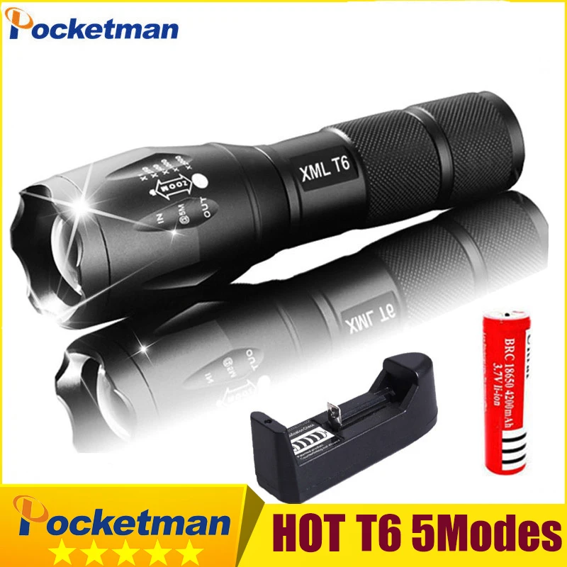 Светодиодный перезаряжаемый фонарик Pocketman XML T6, фонарик, мощный светодиодный фонарик с аккумулятором 18650, мощный уличный фонарик для кемпинга 93
