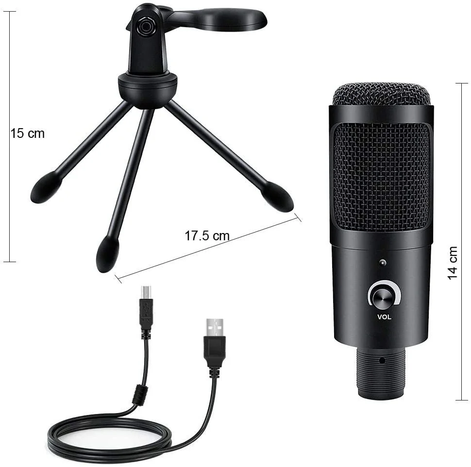 Профессиональный студийный микрофон с USB-кабелем, конденсатор для караоке, амортизатор, поролоновая крышка, ПК и искусство
