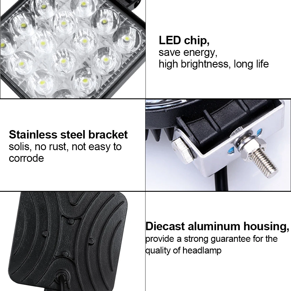 1 шт. 48 Вт автомобильные рабочие фары супер яркий светодиодный прожектор для автомобилямотоциклавнедорожникагрузовикавилочного погрузчикалодки 6000K 1224 В Противотуманные фары для вождения