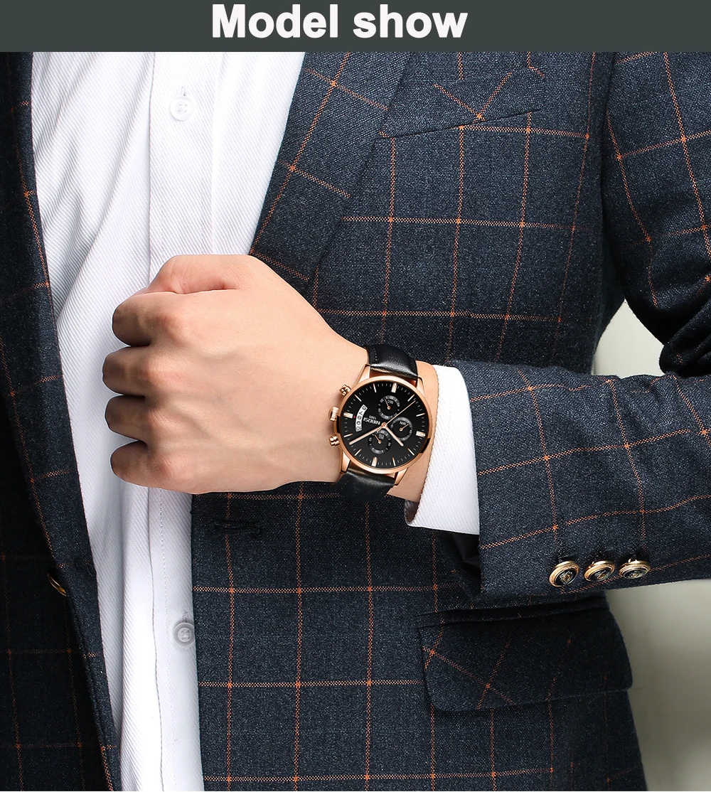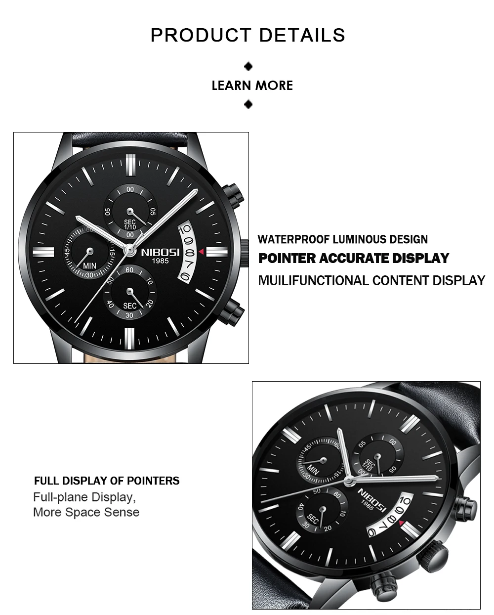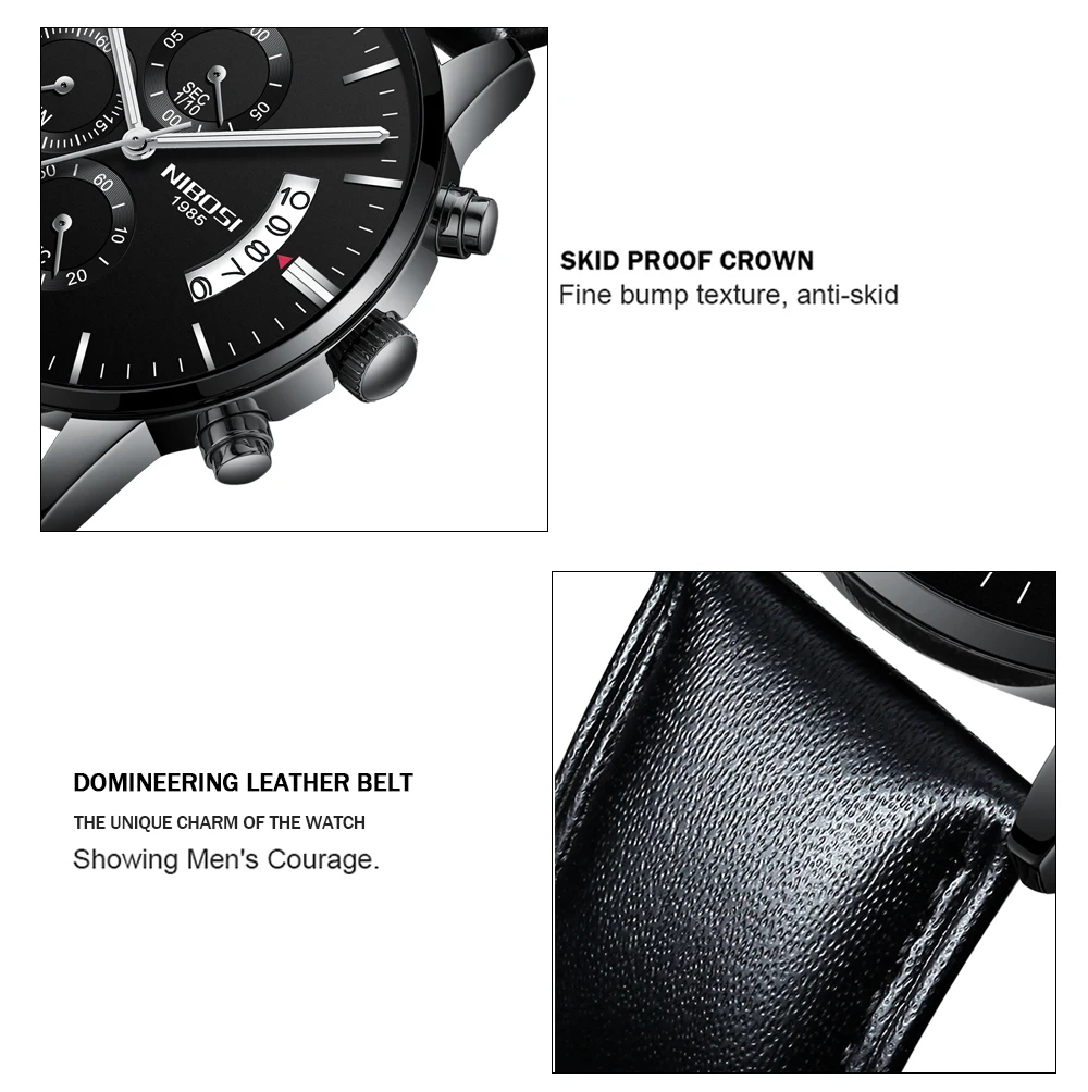 Часы наручные NIBOSI мужские с тремя иглами, модные роскошные светя...