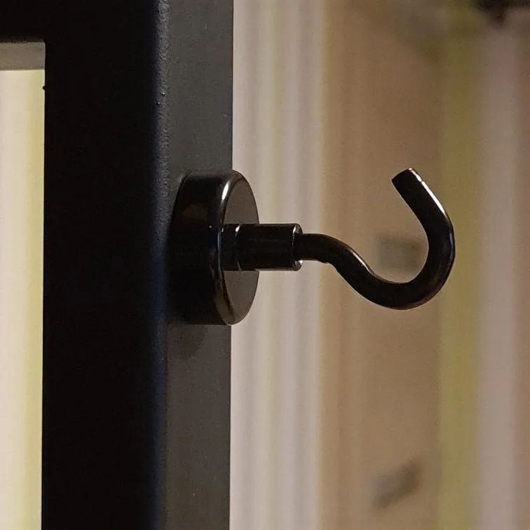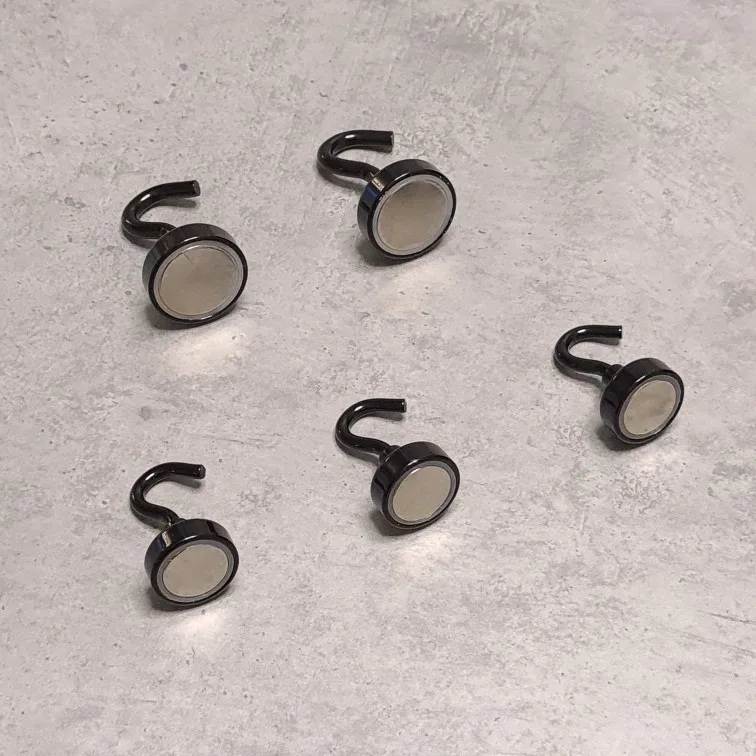Здоровские крючки. На моем стеллаже в лофт стиле они смотрятся красиво и достойно. Держатся они намертво, не оторвать. Естественно сила притяжения магнита зависит от его размера. Важно!!! Центральная часть выкручивается и вместо ее можно вкрутить различный крепеж. Фактически припомощи этих магнитов можно закрепить все что угодно. Покупка огонь. Однозначно могу рекомендовать данную продукцию к приобретению.