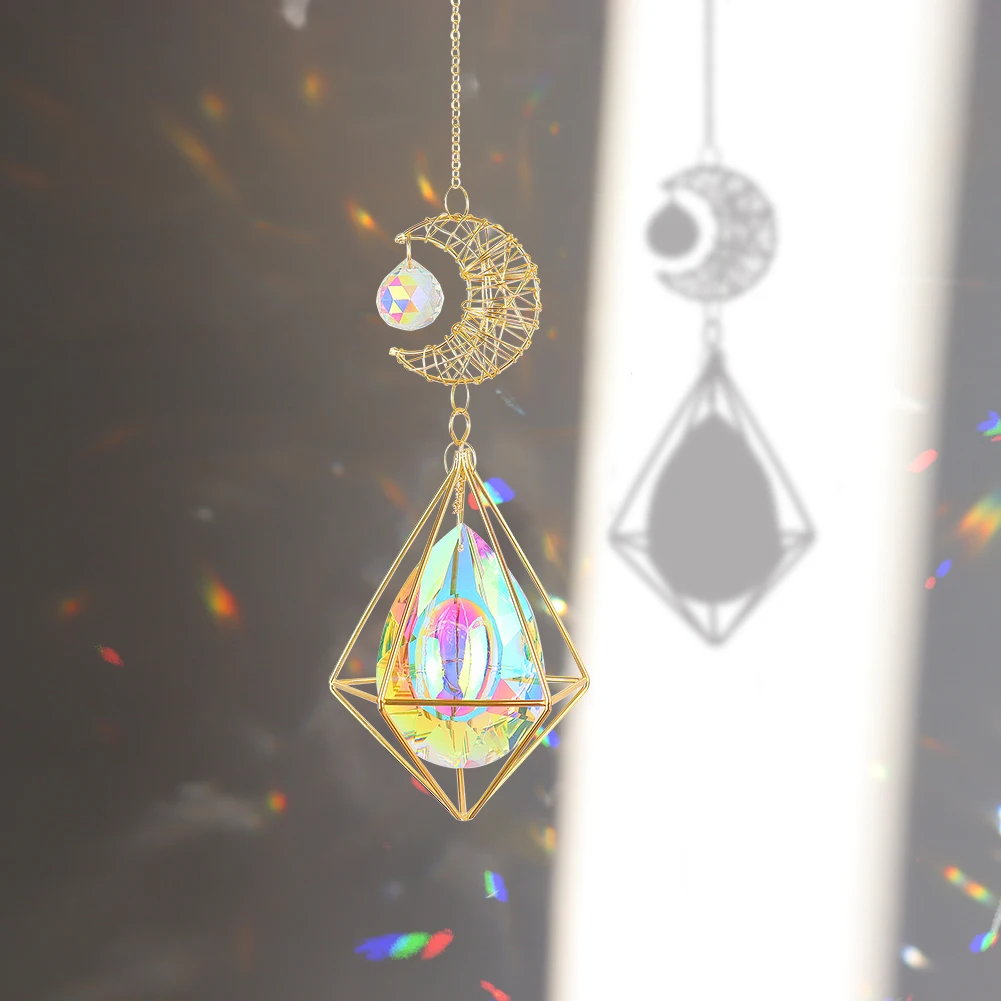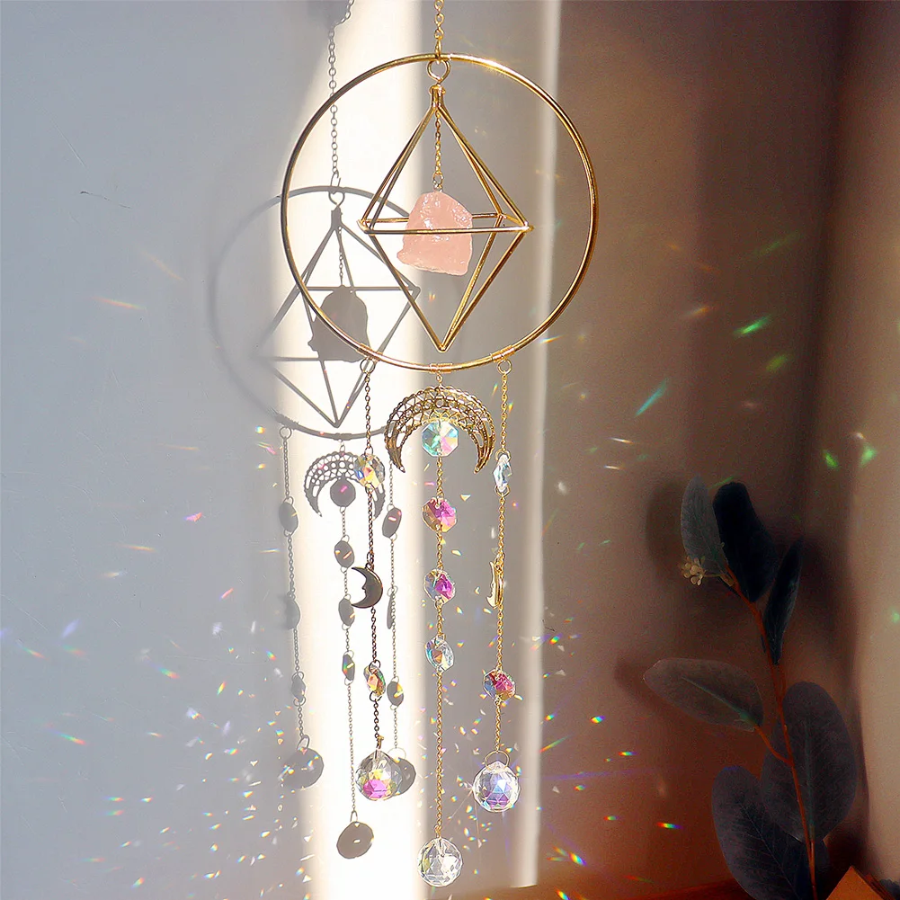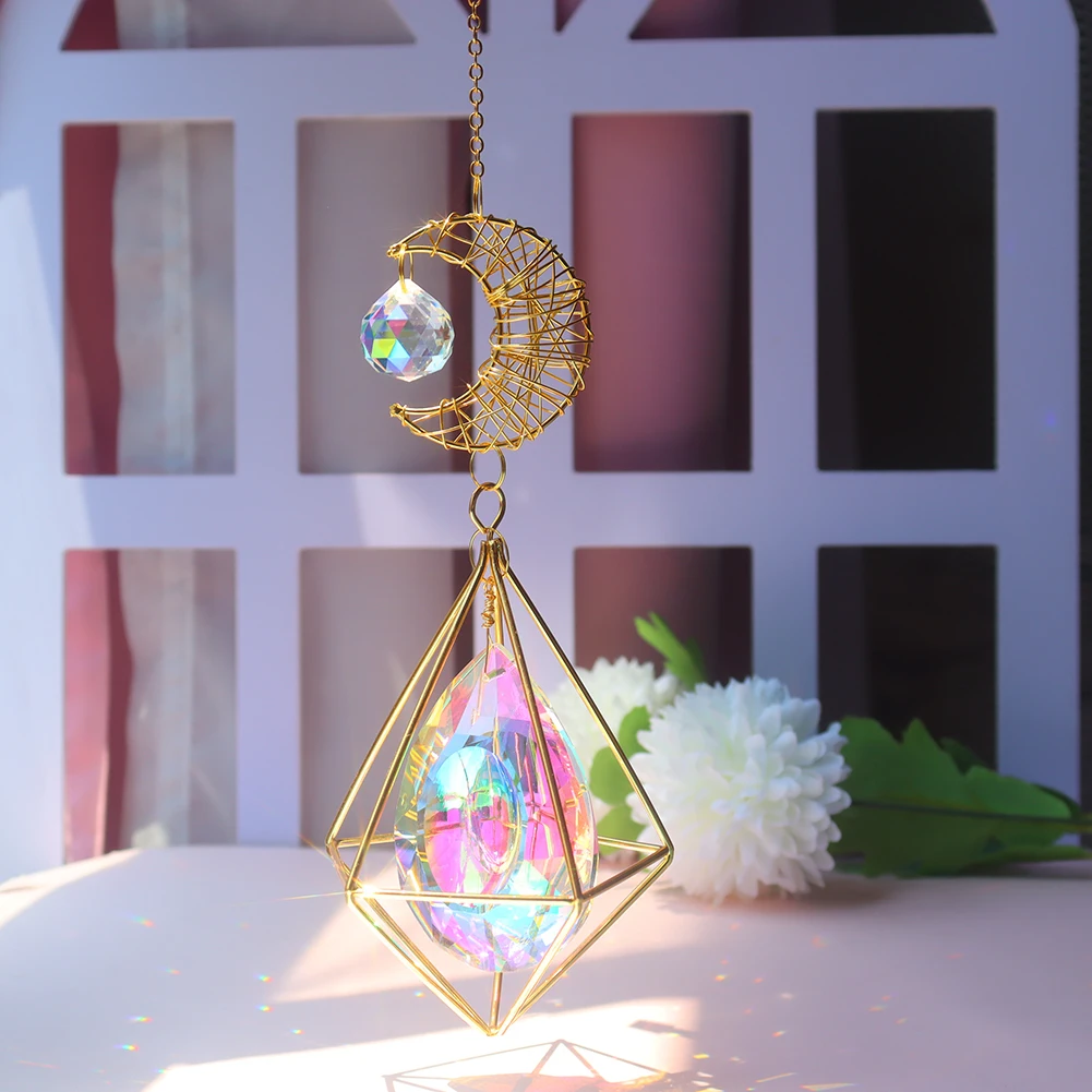 Ловец Солнца Хрустальный ветер колокольчик Звезда Луна солнце колокольчики ветряные колокольчики покрытые цветными бусинами подвесная капля для сада декор ремесло