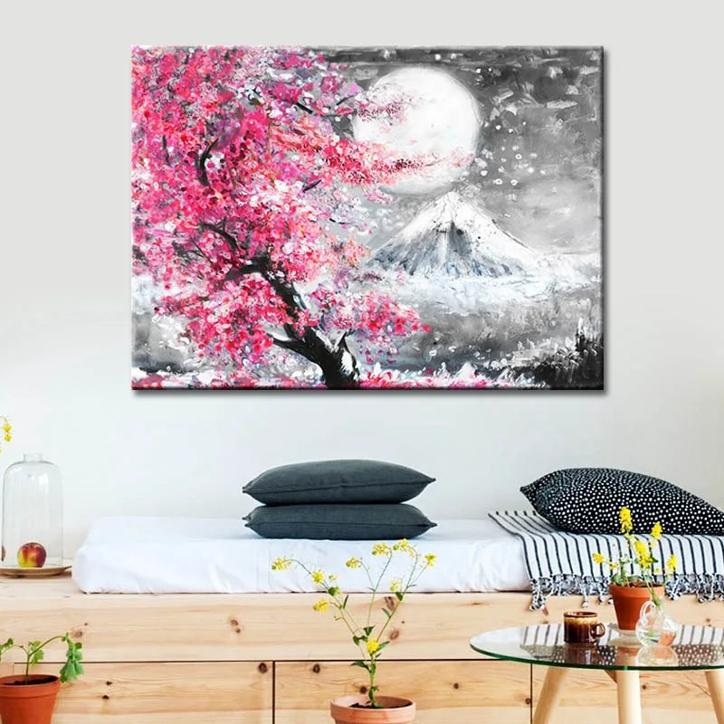 Северная Европа, гора цветущей вишни, пейзаж Fuji, настенное искусство, холст, живопись, плакаты и принты, украшение для стены гостиной