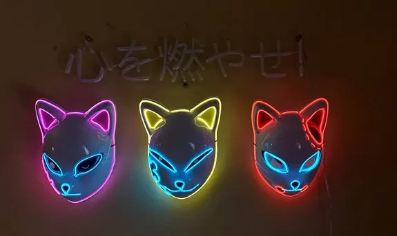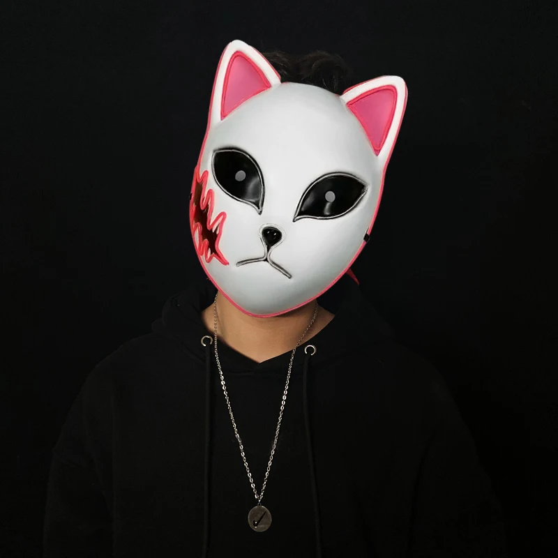 Светящаяся маска на лицо кошки на Хэллоуин, маска с клинком рассекающего демонов, аниме маски Sabito Mascarilla, светящиеся маски для косплея, кролик