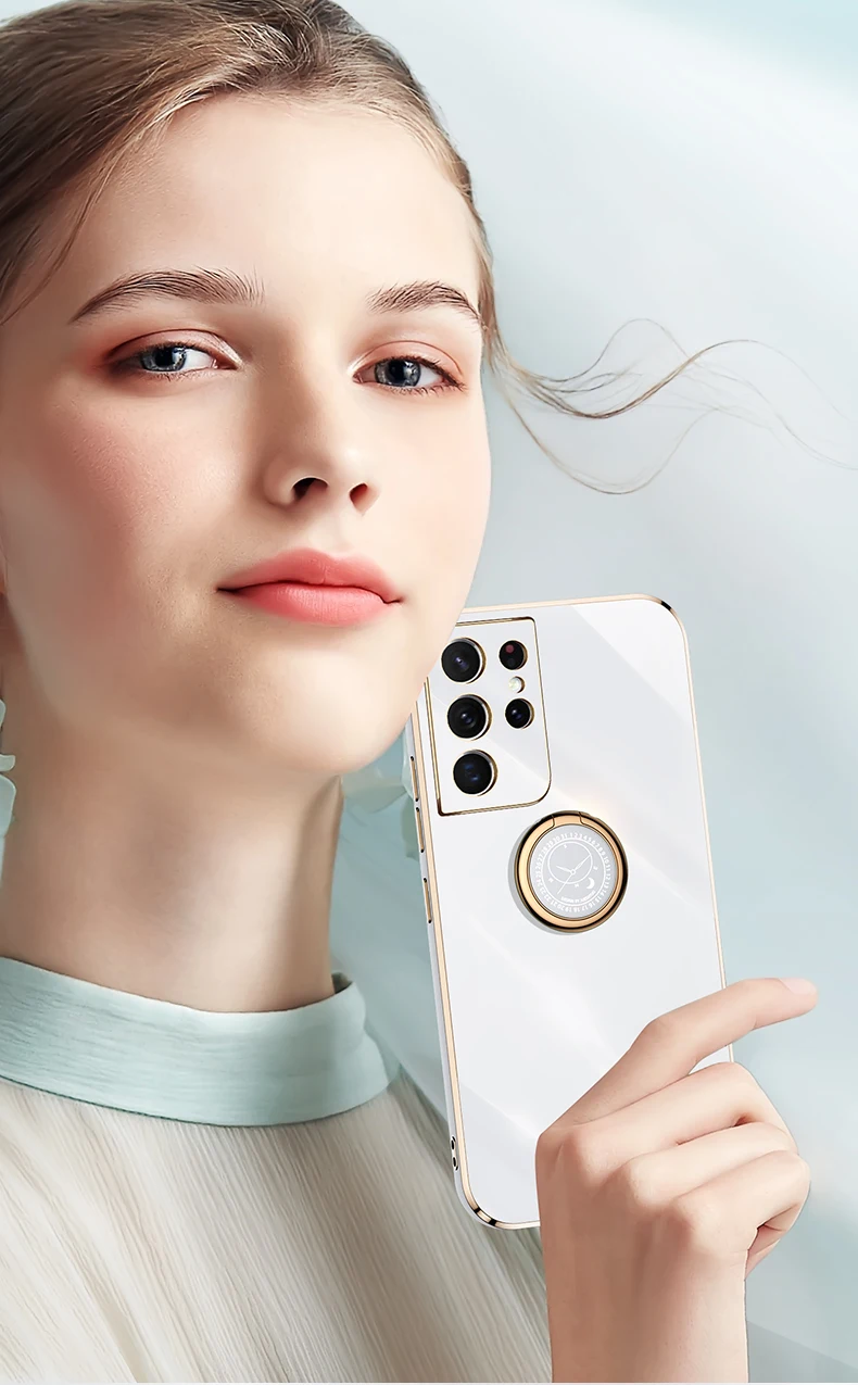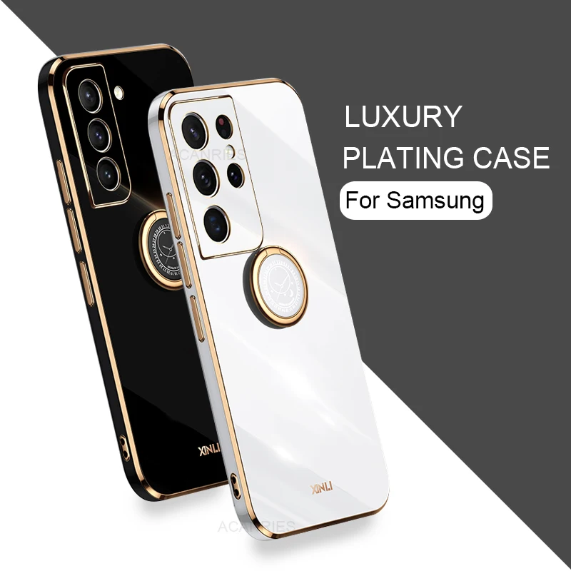 Роскошный квадратный чехол с кольцом-держателем с покрытием для телефона Samsung Galaxy S22 S21 FE Ultra S 21 Plus Pro 5g 2021, мягкий силиконовый чехол-подставка