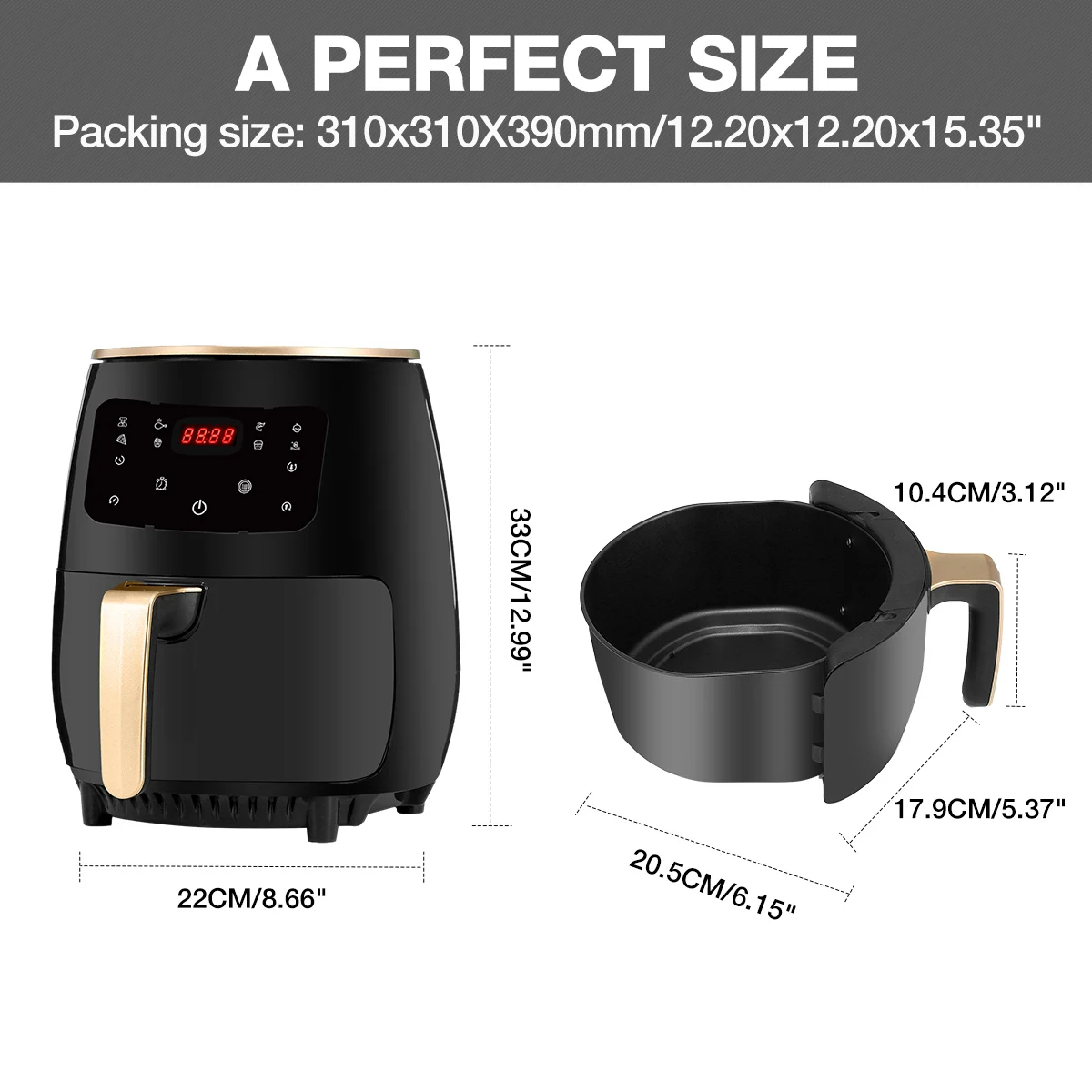 AUGIENB AUG-AF1 аэрофритюрница для приготовления блюд, 4,5 л электрический горячий воздух фритюрницы печь безмасляный Плита с светодиодный цифровой Экран и противопригарная сковорода для жарки с горшок, 1400W электрический горячий воздух фритюрницы печи и масляность Плита для жарки