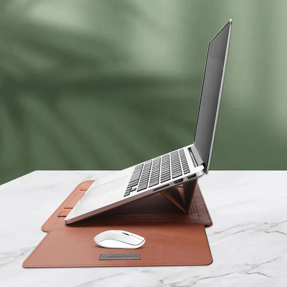 Точки пули:1. Многофункциональный дизайн: подставка для ноутбука, рукав для ноутбука, коврик для мыши 3 в 1 Функция. Регулируемый угол, когда вы чувствуете усталость, это может принести более удобный опыт работы. Потому что защита шеи очень важна. Подставка для ноутбука помогает рассеивать тепло и поддерживать работу устройства.2. Облегчение рассеивания тепла: складная внутренняя сумка типа кронштейна защищает позвоночник с научной точки зрения и в то же время облегчает рассеивание тепла ноутбука. Складная крышка притягивается сильным магнитом, который не легко открыть, и он не рухнет, когда он расположен горизонтально и вертикально.3. Конструкция крючка и петли: крюк и петля и ручная конструкция, чтобы предотвратить скольжение ноутбука и его портативность при выходе.4. Несколько функций: Чехол-ручка в конце внутренней сумки может быть вставлен в офисные ручки. Он имеет несколько функций в одном пакете. В комплект входят четыре комплекта: сумка для зарядного устройства, намоточный ремень, сумка для мыши и внутренняя сумка для ноутбука.5. Премиум-Материал: изготовлен из высококачественной искусственной кожи, приятный на ощупь, и использует фланелевую подкладку для поглощения ударов. Он может хорошо защитить ваш ноутбук, не беспокойтесь о царапинах и других повреждениях вашего ноутбука, портативной внутренней сумке, тонкой, практичной, не легко деформируется.