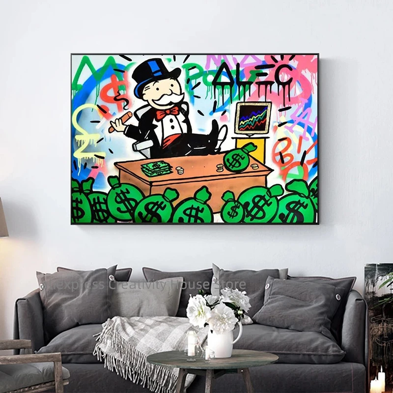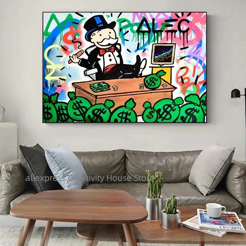 Граффити искусство Alec Монополия Богатые Деньги человек холст живопись плакаты и печать Настенная картина для гостиной домашний декор