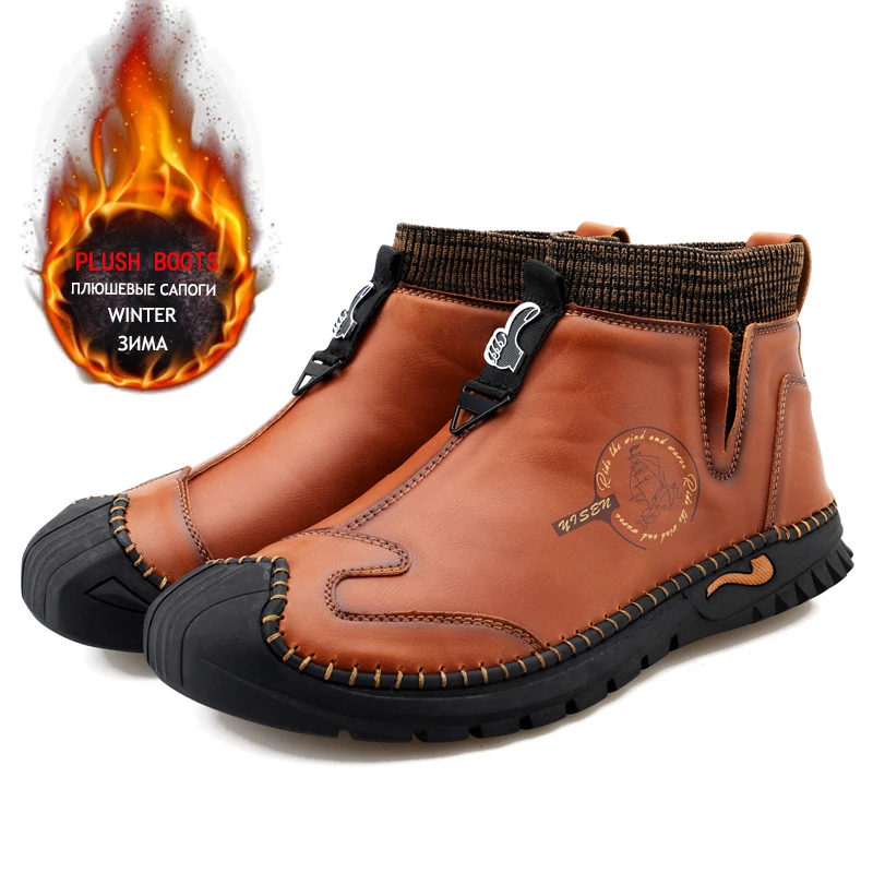 Мужские ботинки из натуральной кожи, осенне-зимние теплые мотоциклетные ботинки на платформе, с плюшевой подкладкой