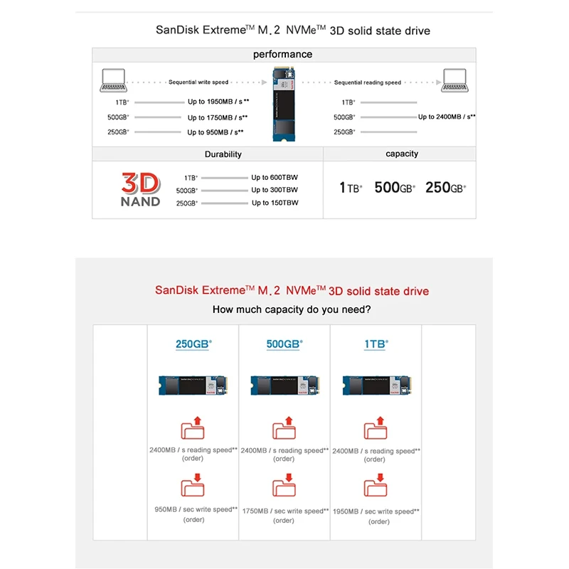 100% Sandisk SSD M2 3D nvme 250 ГБ 500 M2 SSD 1 ТБ PCIe NVMe 2280 H...