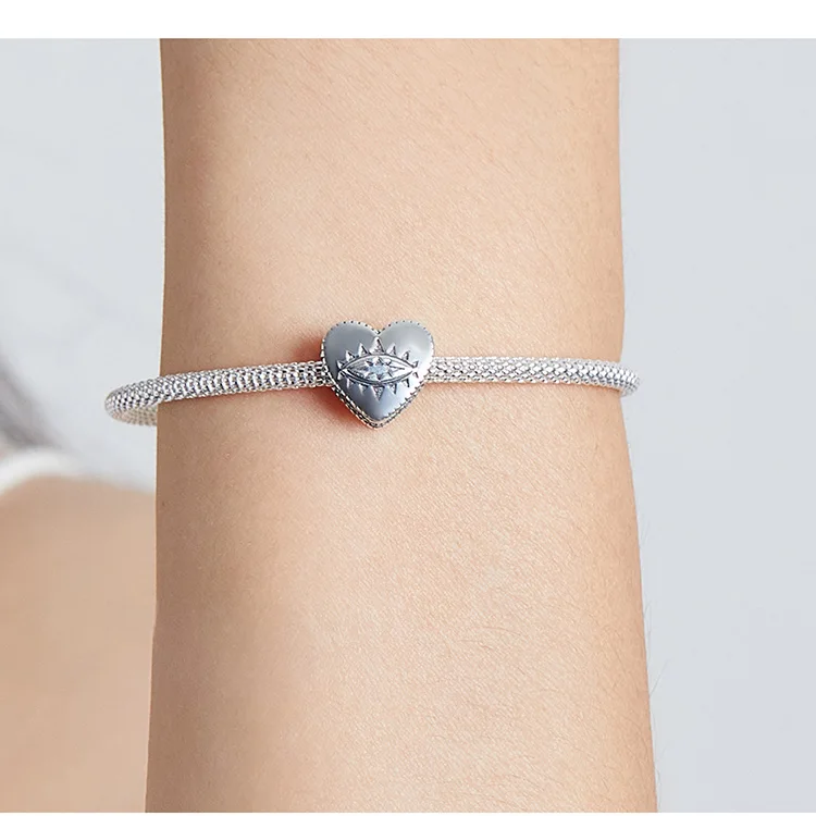 Шарм-змея из серебра 100% пробы в форме сердца с Бусиной глаз демона, на браслет и браслет