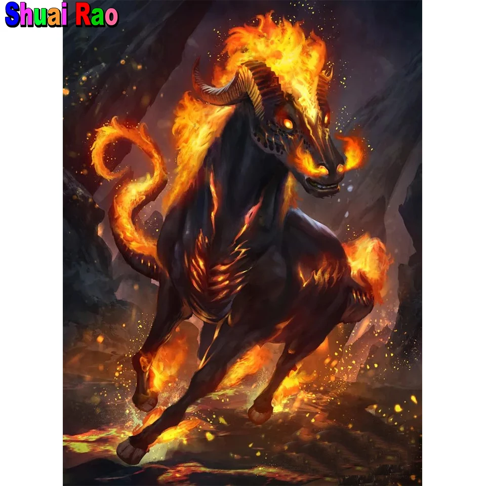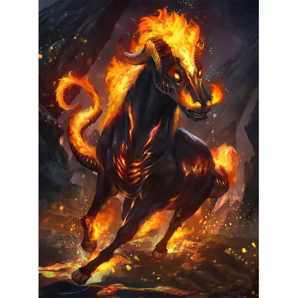 Фэнтези готический мифический зверь DIY 5D алмазная картина стежок полная дрель абстрактная огненная лошадь Алмазная вышивка мозаика домашний декор