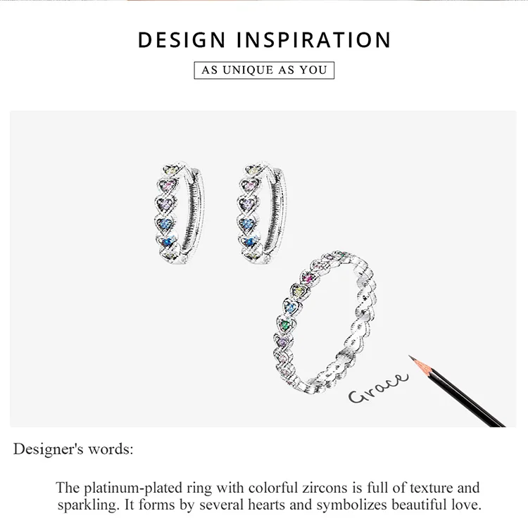 Bamoer блестящее сердце пряжки для ушей 925 пробы Серебряное штабел...