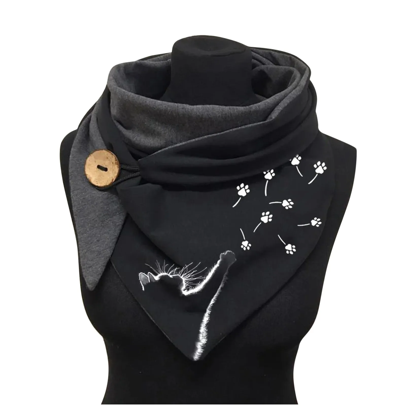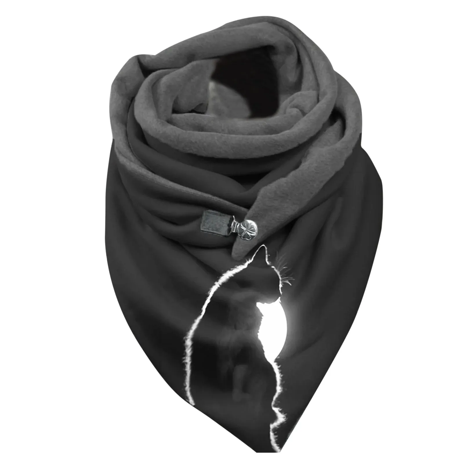 Шарф женский зимний, мягкий, с принтом в виде кошки, на пуговицах, ...