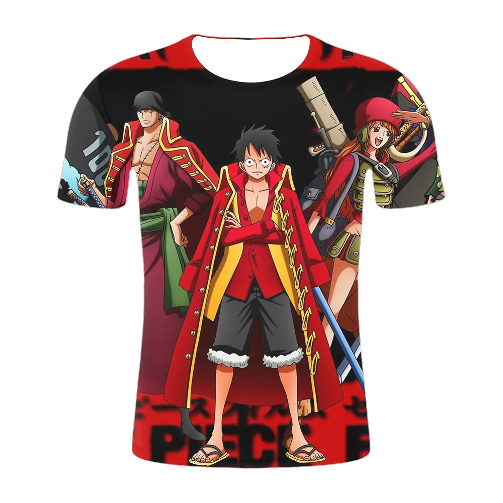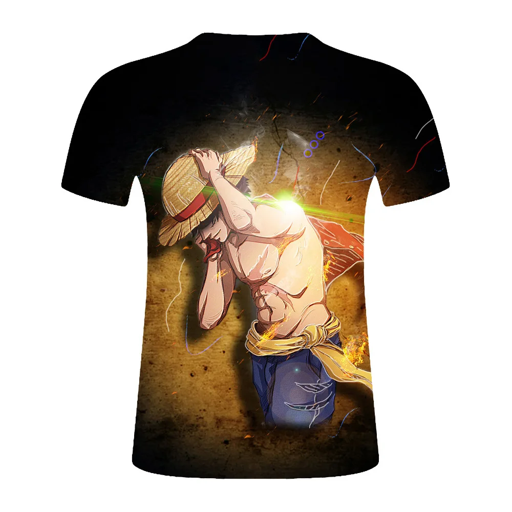 Футболка Летняя с круглым вырезом, коротким рукавом и принтом Луффи
