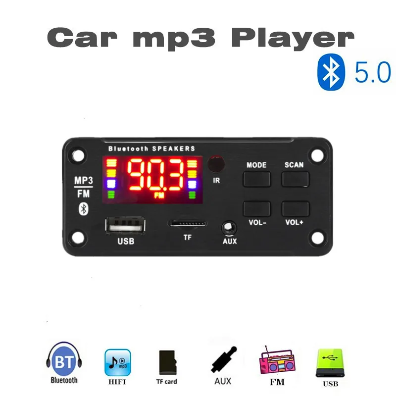1. Версия Bluetooth 5,02. Поддержка вызовов (нажмите кнопку паузы, чтобы ответить на вызов при входящем вызове).3. Поддержка записи. Запись поддерживается только в режиме TF или в режиме USB.(Удерживайте кнопку MODE, чтобы начать запись, удерживайте кнопку MODE снова, чтобы отменить запись и воспроизвести файл записи; Выходите из режима записи и удерживайте кнопку паузы, чтобы выйти из него. При записи необходимо подключить устройство хранения данных, например: u-диск или tf-карта;)4. Поддержка памяти отключения питания5. Напряжение питания поддерживает между 5 В-12 В постоянного тока, а рабочий ток-от 1 до 3 А. Один usb-разряд поддерживает максимальный ток 2A, а размер тока определяется входным напряжением и линией передачи данных для определения конечного выходного значения.6. Может быть непосредственно подключен к динамикам, с усилителем мощности и функциями декодирования.7. Поддержка формата MP3 / WAV / APE / FLAC8. Основные функции MP3/USB/TF/LINE IN/FM/BLUETOOTH/дистанционное управление/9. Мощность 6 Вт, true stereo 2*3 Вт. 10. Поддержка выбора и воспроизведения папок. Во время воспроизведения USB или TF на устройстве есть папка, в которой есть песни. Нажмите предыдущую кнопку или следующую кнопку дважды, чтобы выбрать папку для воспроизведения песни, и экран отобразит F001-F00? И так далее, да? F00 отображается для каждой папки