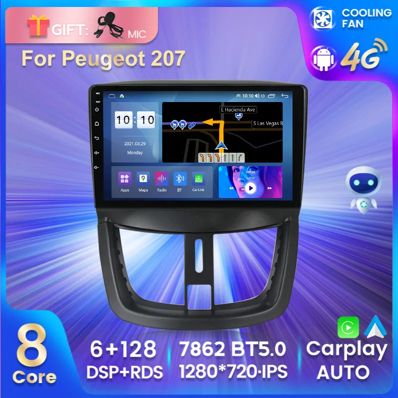Автомобильный мультимедийный плеер MEKEDE 7862C 6 + 128G Android11 Все в одном, интеллектуальная система для Peugeot 207 2006-2015 GPS Carplay 2din DVD