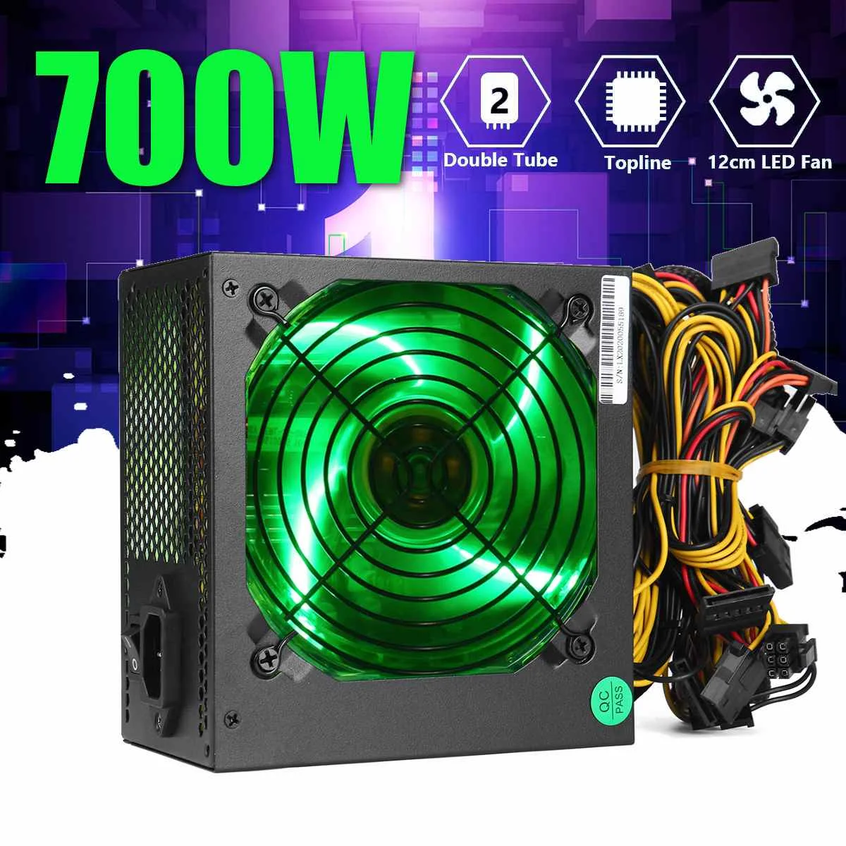 700 Вт источник питания 120 мм зеленый светодиодный вентилятор 24 Pin PCI SATA ATX 12V компьютерный источник питанияОсобенности:★Пиковая мощность 700 Вт, подходит для высококлассной конфигурации компьютера на рынке.★В соответствии со спецификацией Intel ATX12V, Поддержка Intel, AMD, полный спектр двухъядерный платформы, Поддержка VISTA, Win7 операционной системы.★Использование 12 см гидравлического подшипника зеленый светодиодный вентилятор, эффективный и энергосберегающий бесшумный вентилятор, мощность в режиме ожидания 1 Вт.★Интеллектуальная схема контроля температуры, автоматически регулирует скорость вентилятора и продлевает срок службы.★Многофункциональная конструкция цепи защиты, с перенапряжением, перегрузки по току, перегрузки, низкого напряжения, короткого замыкания, защиты и других функций защиты.Характеристики:Материал: корпус из алюминиевого сплава + медный кабельЦвет: черныйРазмер изделия: 15x14x8.5 см/5,9 "x 5,5" x 3,3"Диаметр вентилятора: 12 см/4,7"Длина кабеля: около 140 см/55,1"Длина выходной линии: около 50 см/19,7 ".Стандарт электропитания: ATX 12VИнтерфейс: 1x24P + 1x4P + 1x6P + 2x(1*4pin + 1 * SATA)Входное напряжение: 220 ВВыходное напряжение: 12V 16AПиковая мощность: 700 ВтНоминальная мощность: 500 ВтЭффективность: ≥ 80%Подходит для: настольного компьютераПосылка включает в себя:1 x источник питания1 х Кабель питания (штепсельная Вилка EU/UK/AU)Примечание:1. Замеры сделаны вручную, поэтому возможны 0,5-1 см из-за различий в связи с тем, что измерения выполнены вручную.2. В связи с использованием разных по светильник экране монитора фактический цвет товар точно такой же, как и цвет изделия на фото может быть s светильник ly отличается из-за характеристик монитора компьютера.