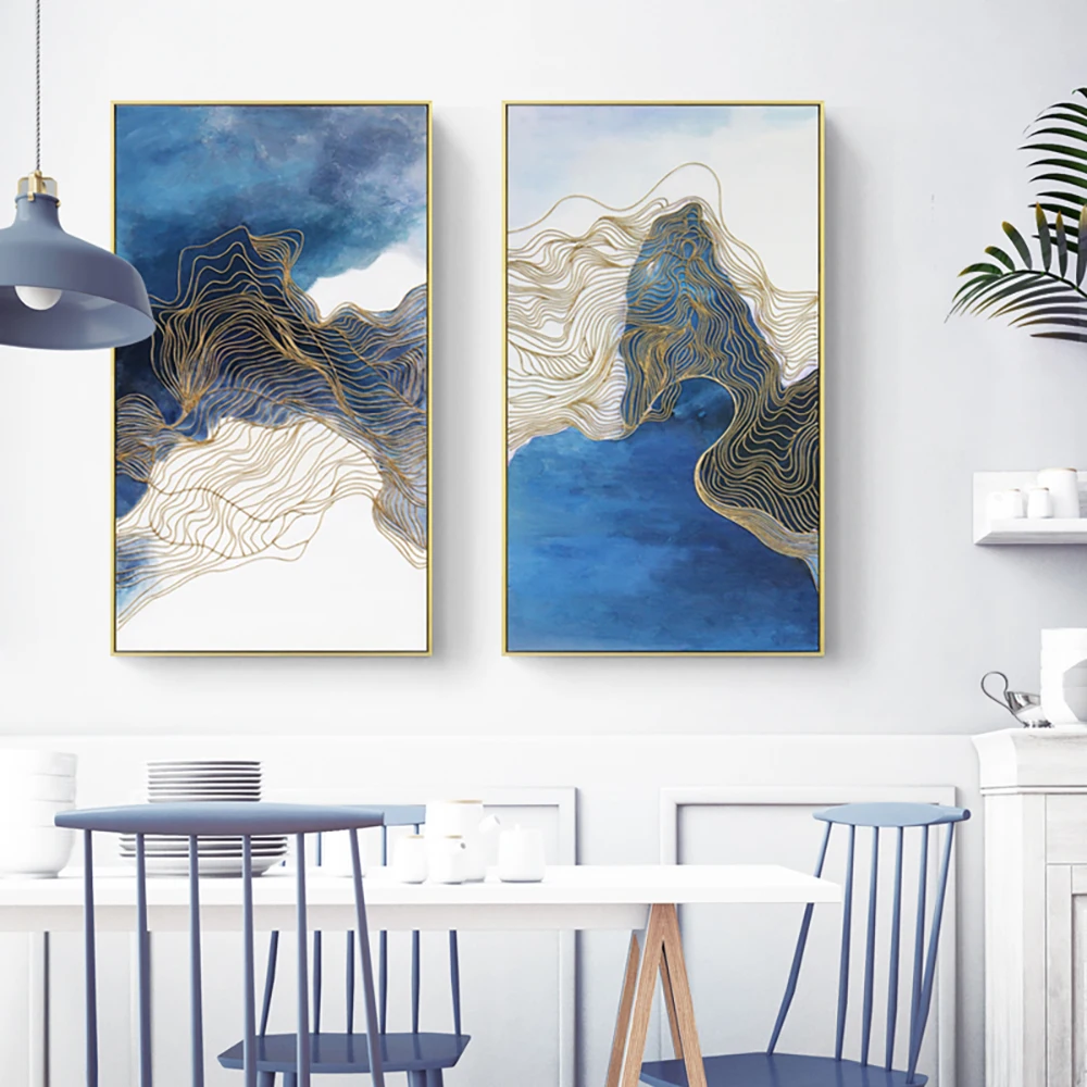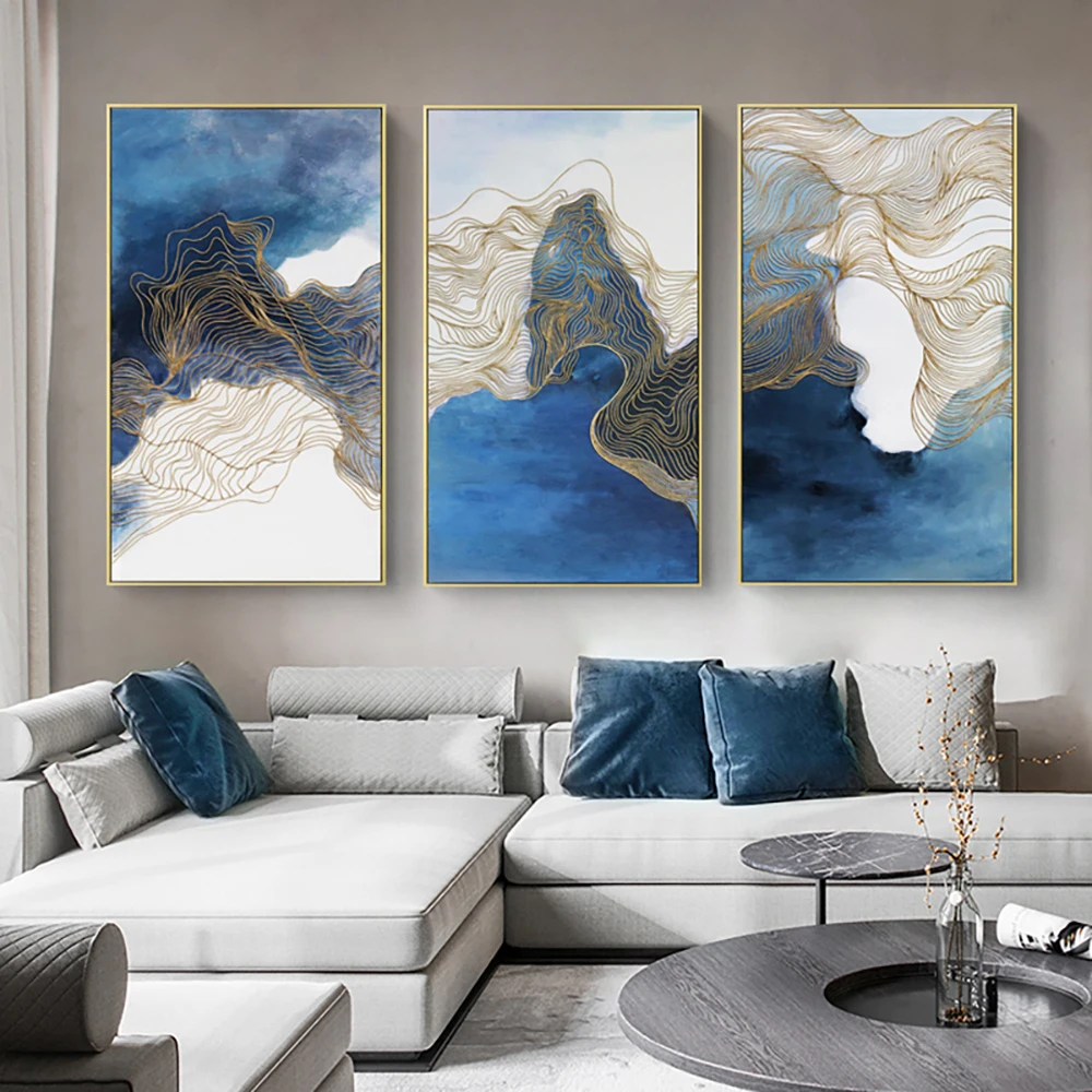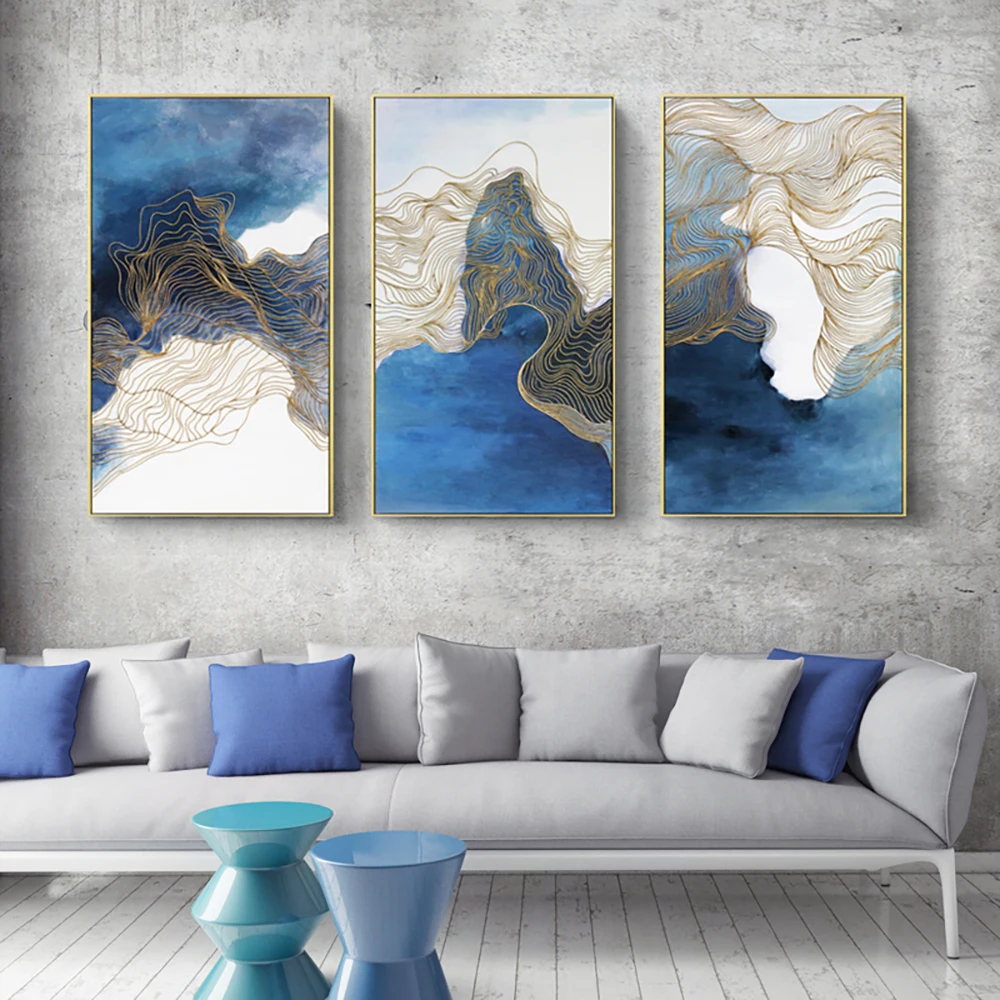 Декоративная роспись, синий мрамор, абстрактный плакат, Картина на холсте для гостиной, настенные художественные принты для современного домашнего декора