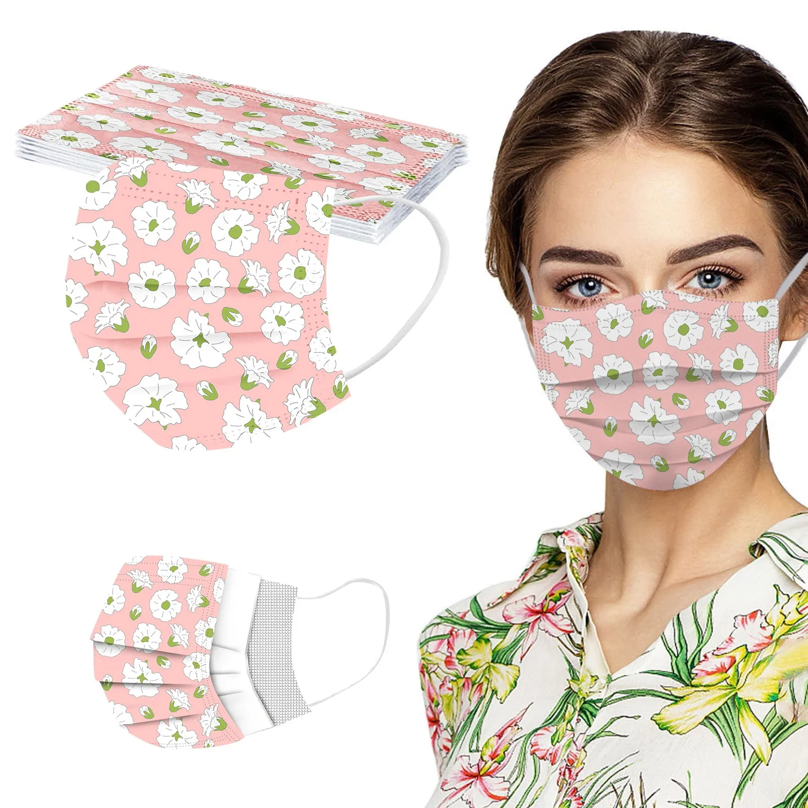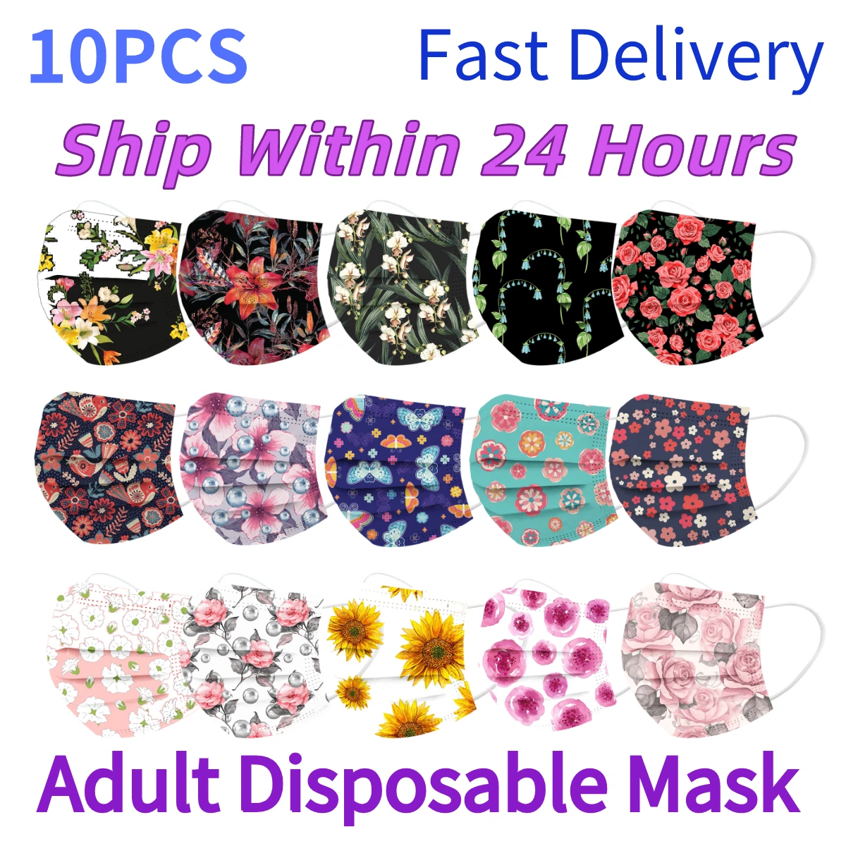 10 шт., одноразовые маски для взрослых с цветочным принтом