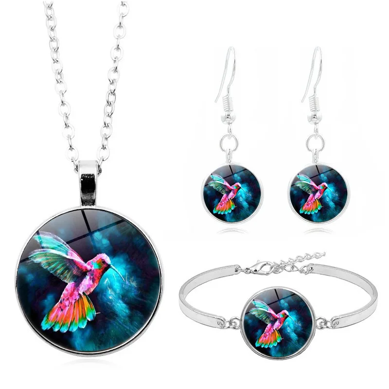 Ожерелье и браслет Hummingbird с подвеской из кабошона, комплект женских ювелирных изделий из 4 предметов, креативная цепочка на свитер