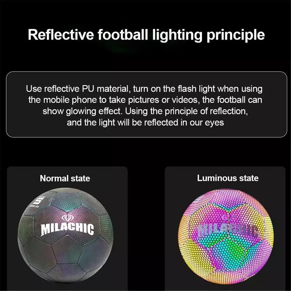 Светоотражающий футбольный мяч, размер 45, светящийся футбольный мяч для взрослых и детей, светящийся футбольный мяч для соревнований